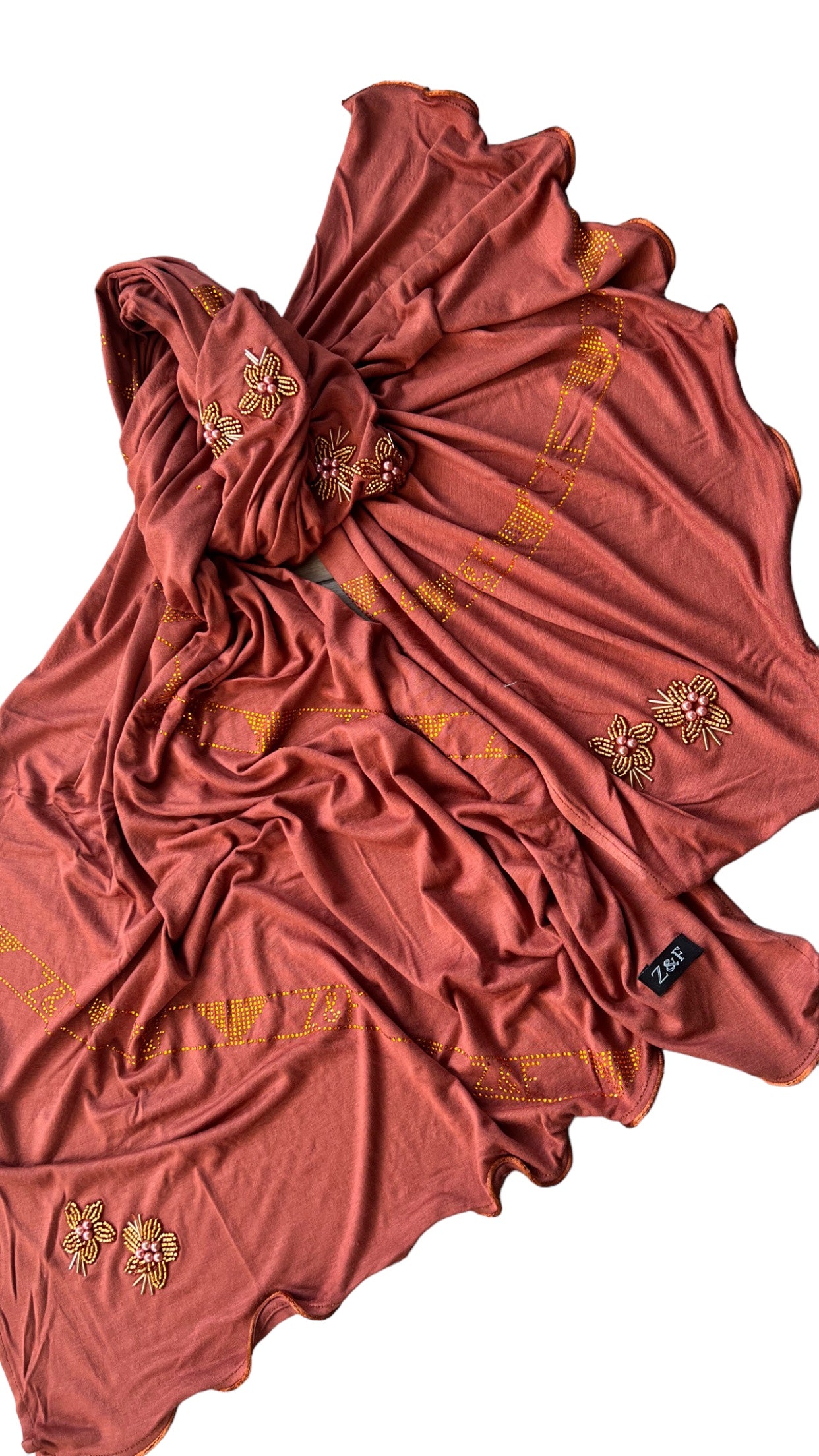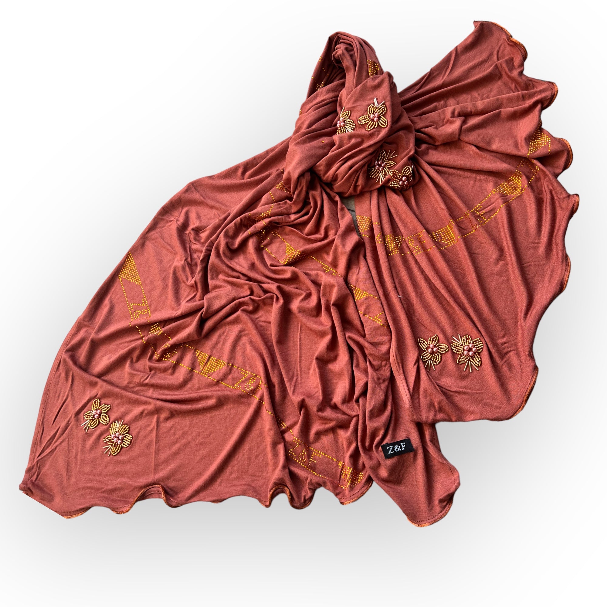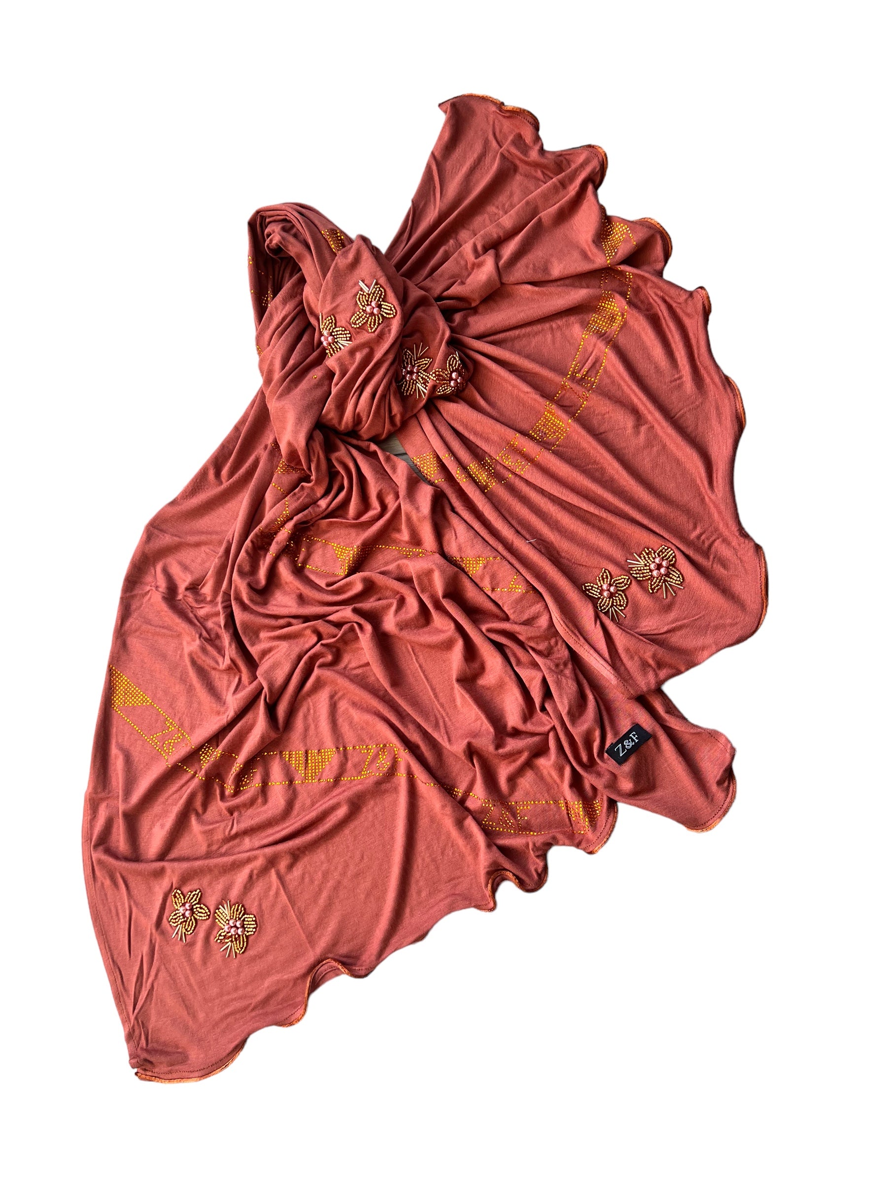 The Z&F scarfs are made from a soft jersey fabric with just the right amount of thickness. This fabric falls perfectly in place and stays beautiful after long time use. These scarfs can even be worn without a underscarf or pins.
