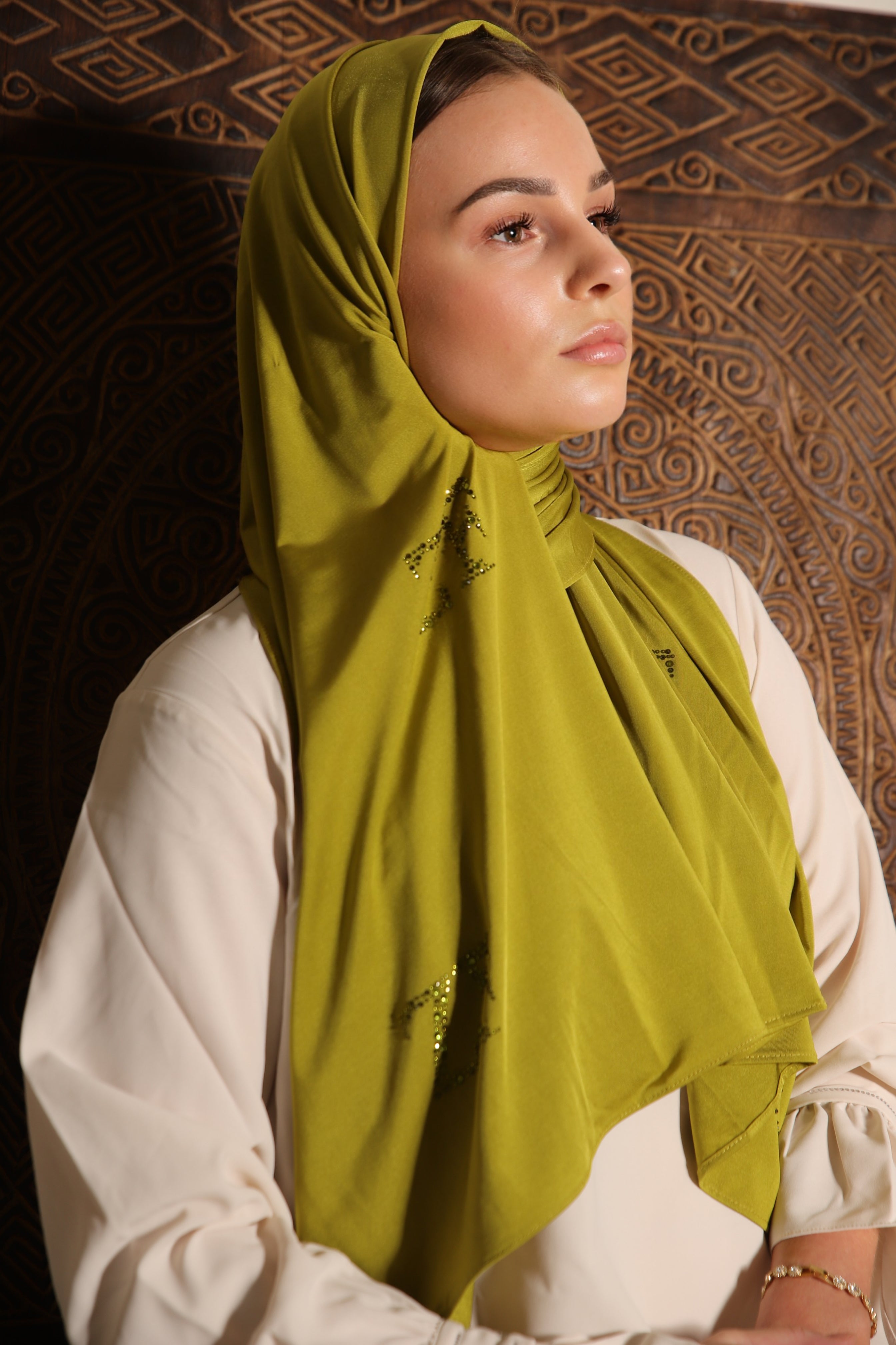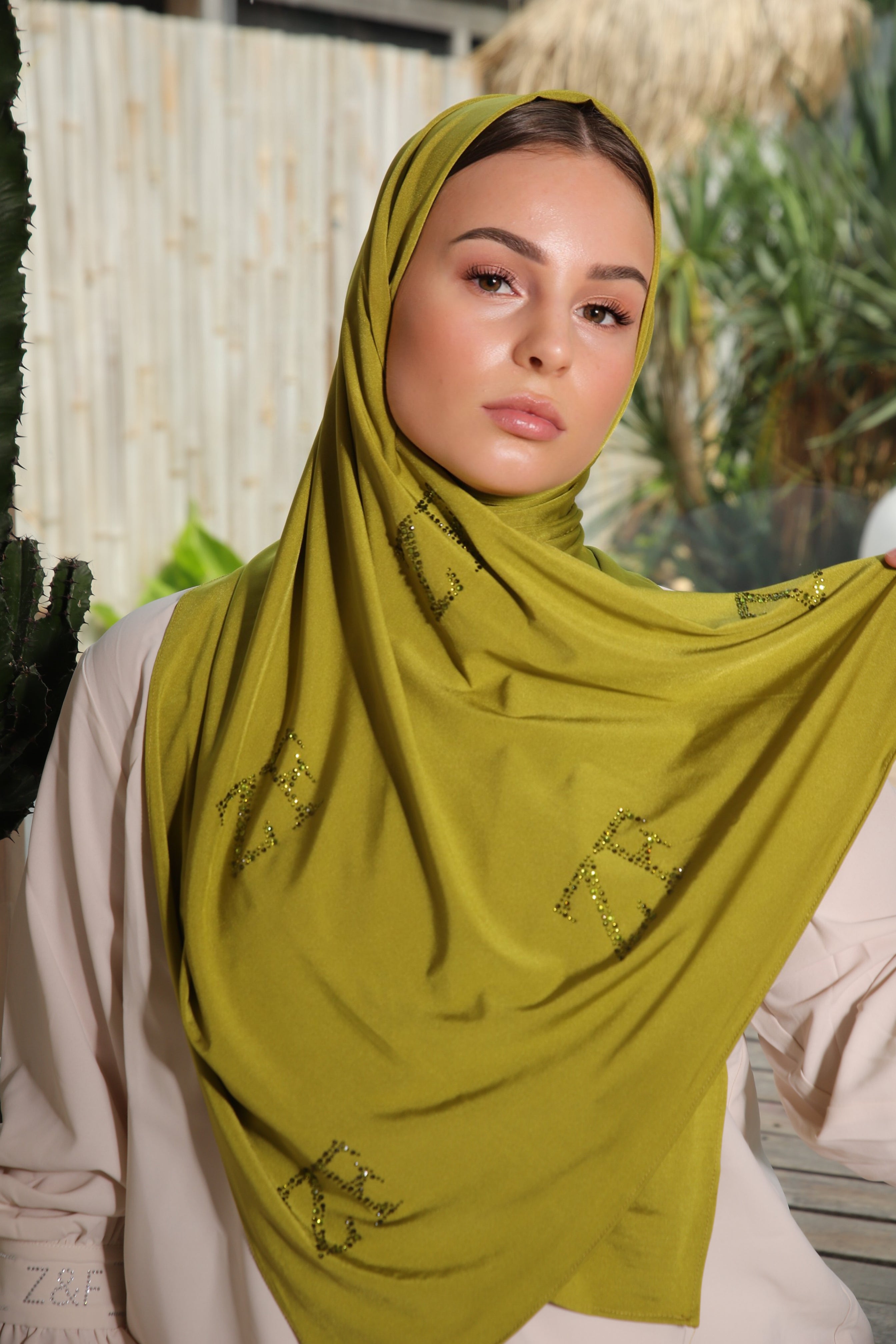 The design By Z&F scarfs are made from a soft jersey fabric with just the right amount of thickness. This fabric falls perfectly in place and stays beautiful after long time use. These scarfs can even be worn without a underscarf or pins.