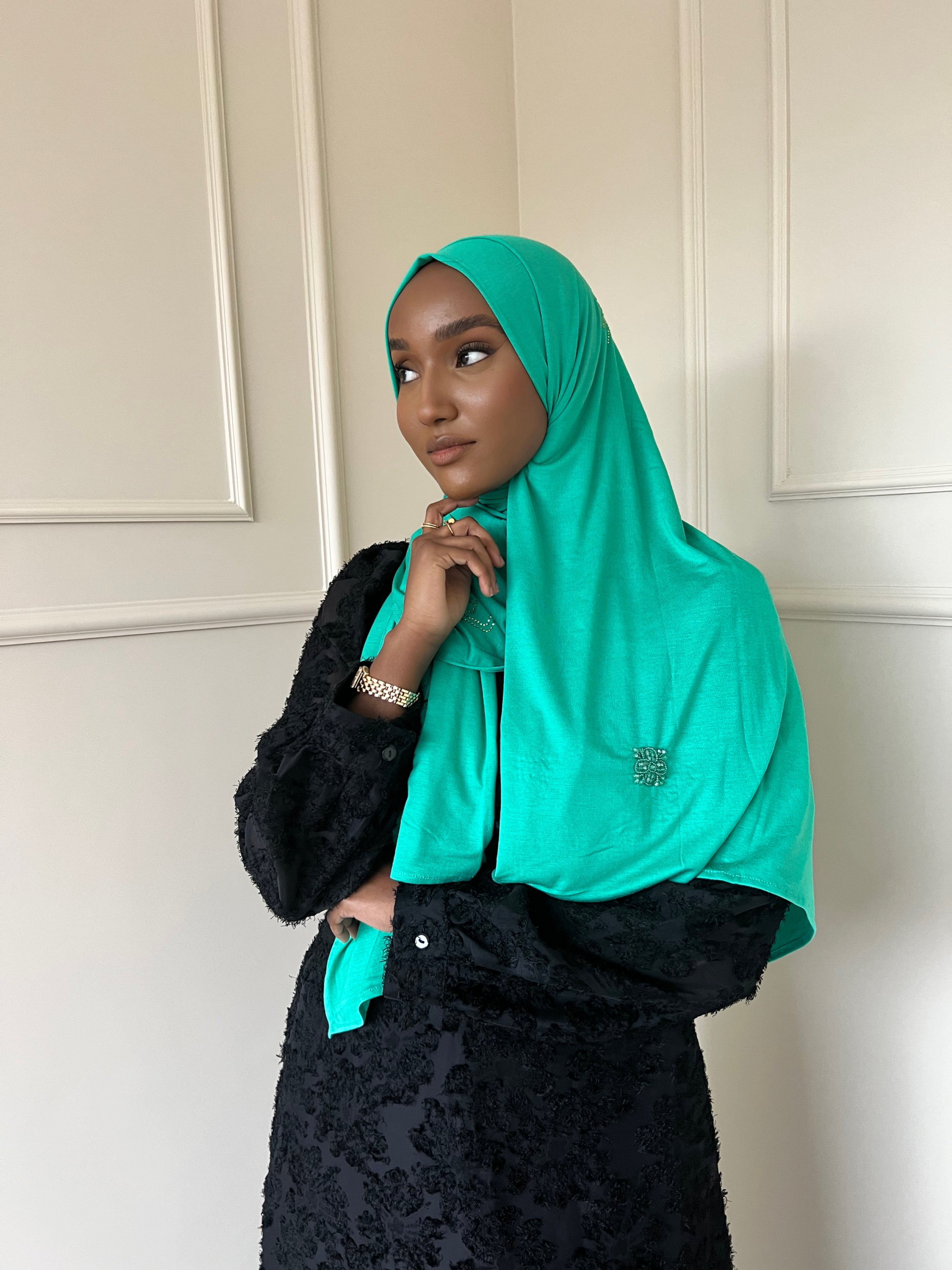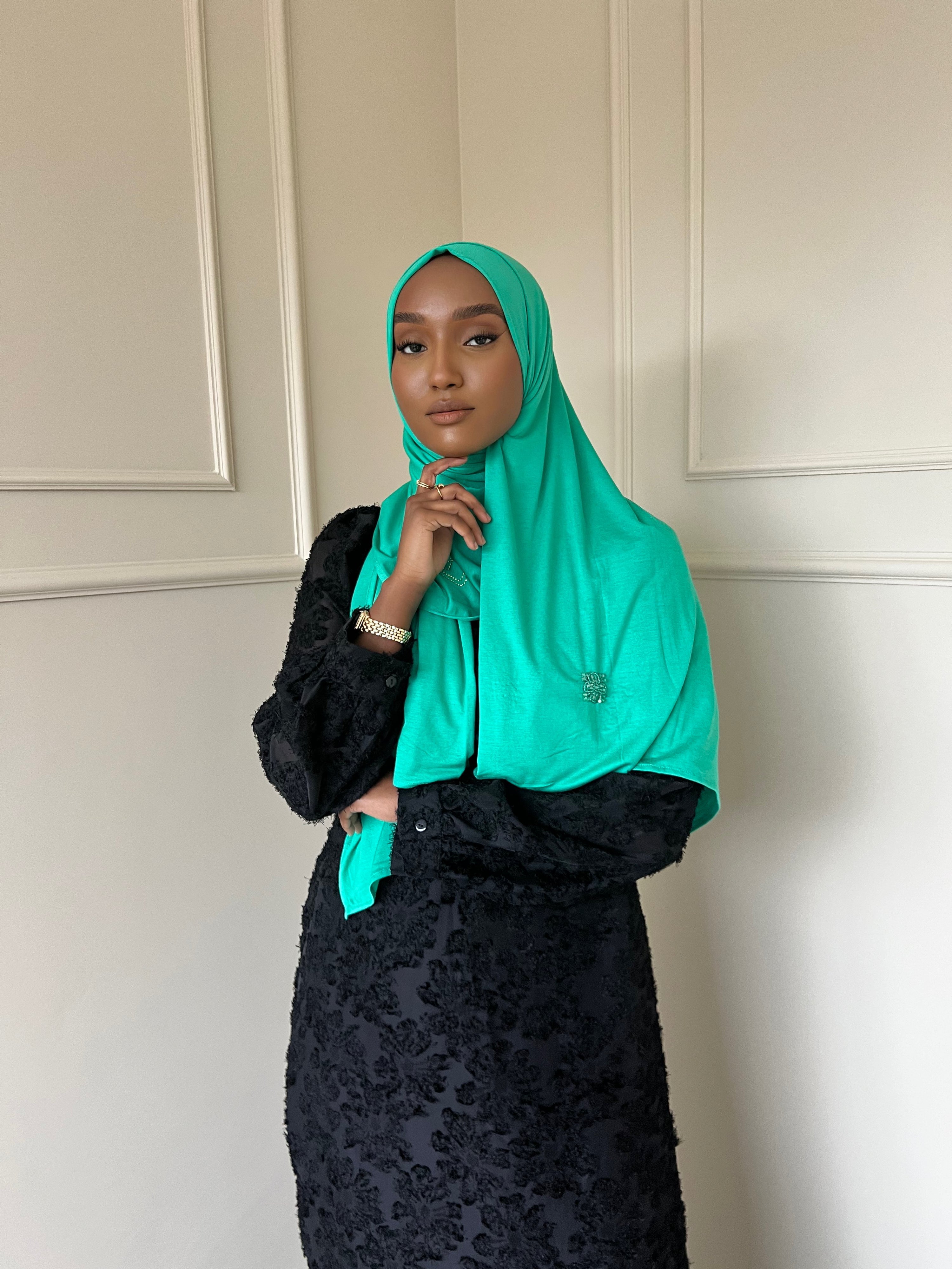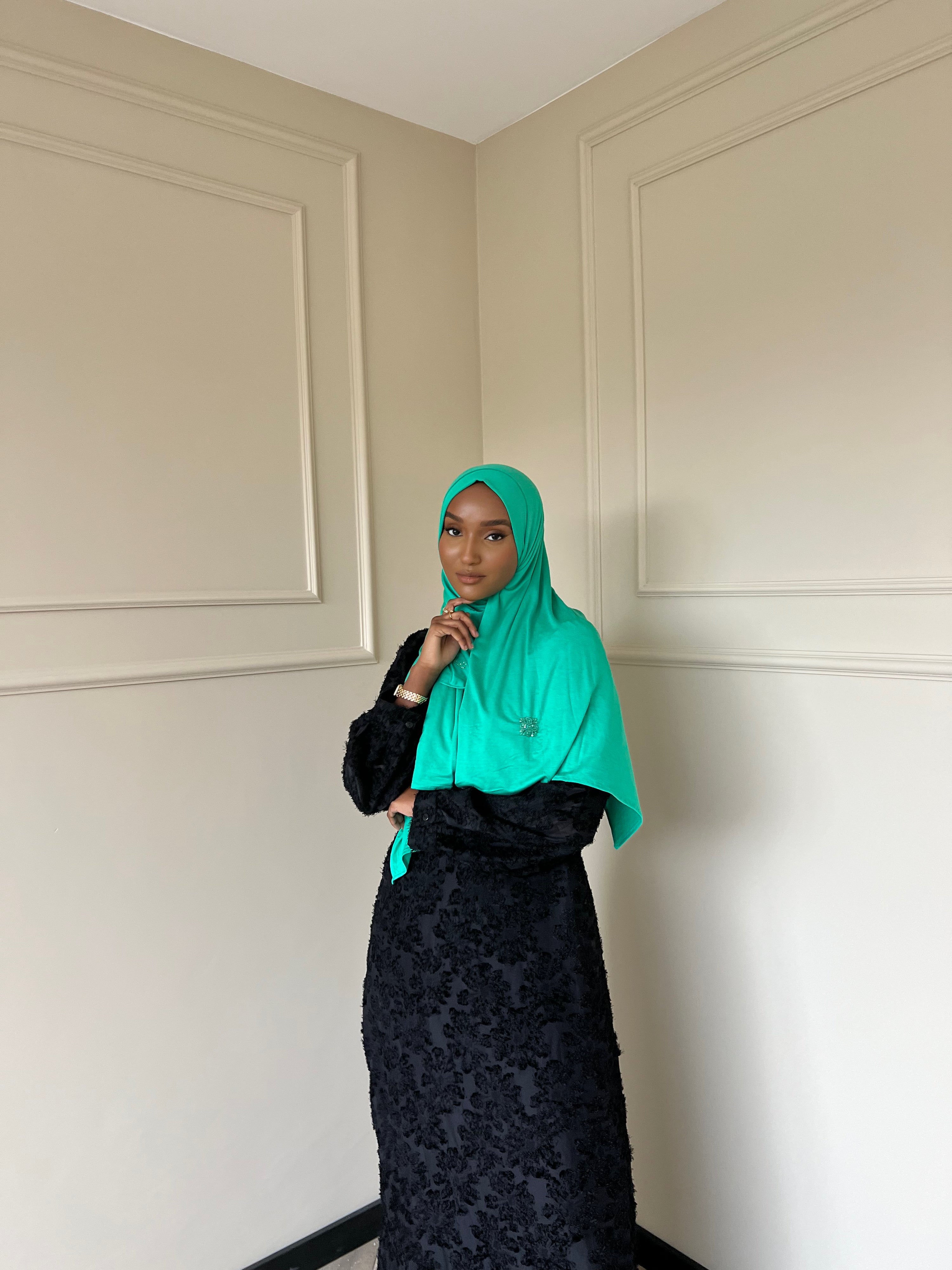 The Z&F scarfs are made from a soft jersey fabric with just the right amount of thickness. This fabric falls perfectly in place and stays beautiful after long time use. These scarfs can even be worn without a underscarf or pins.