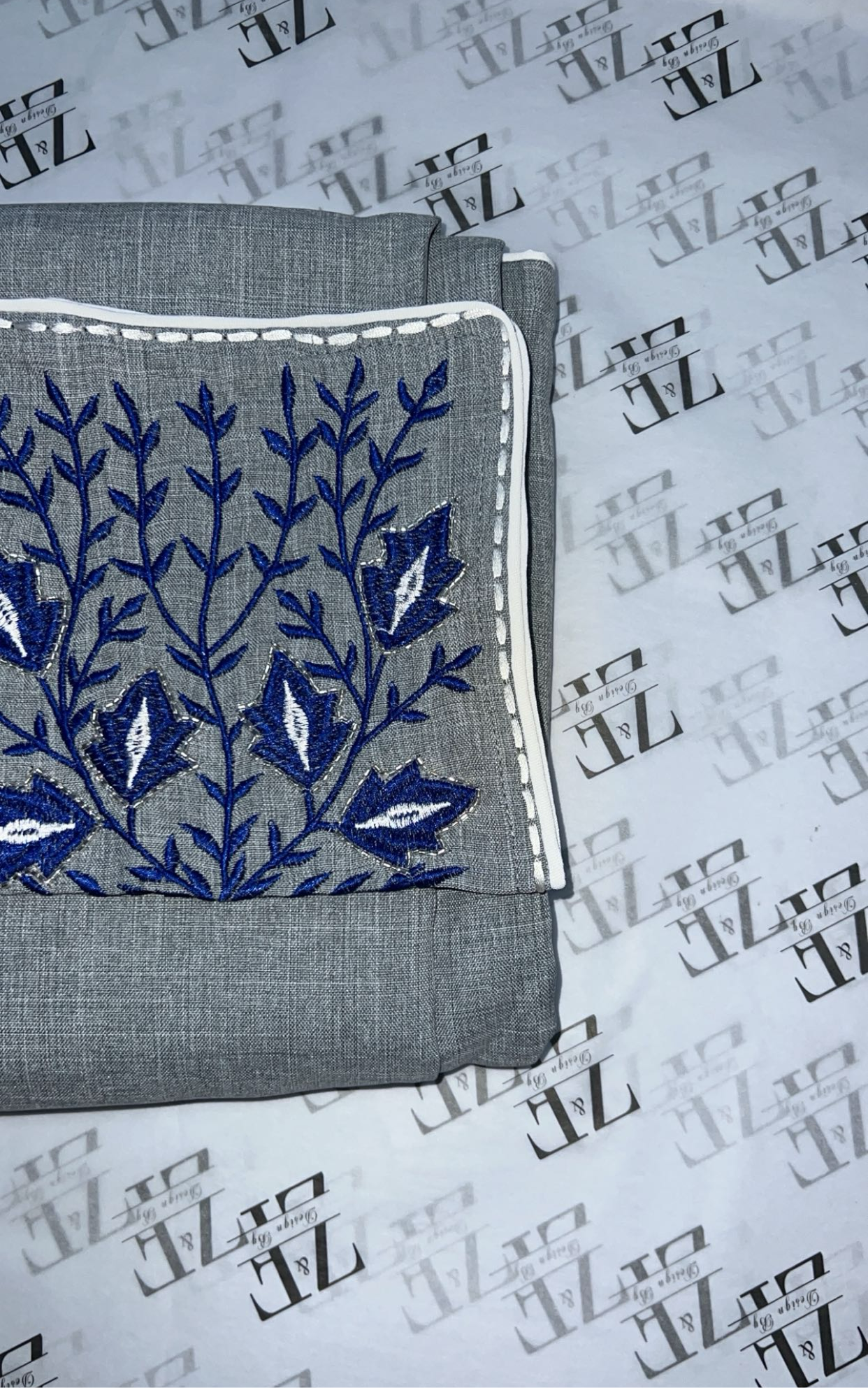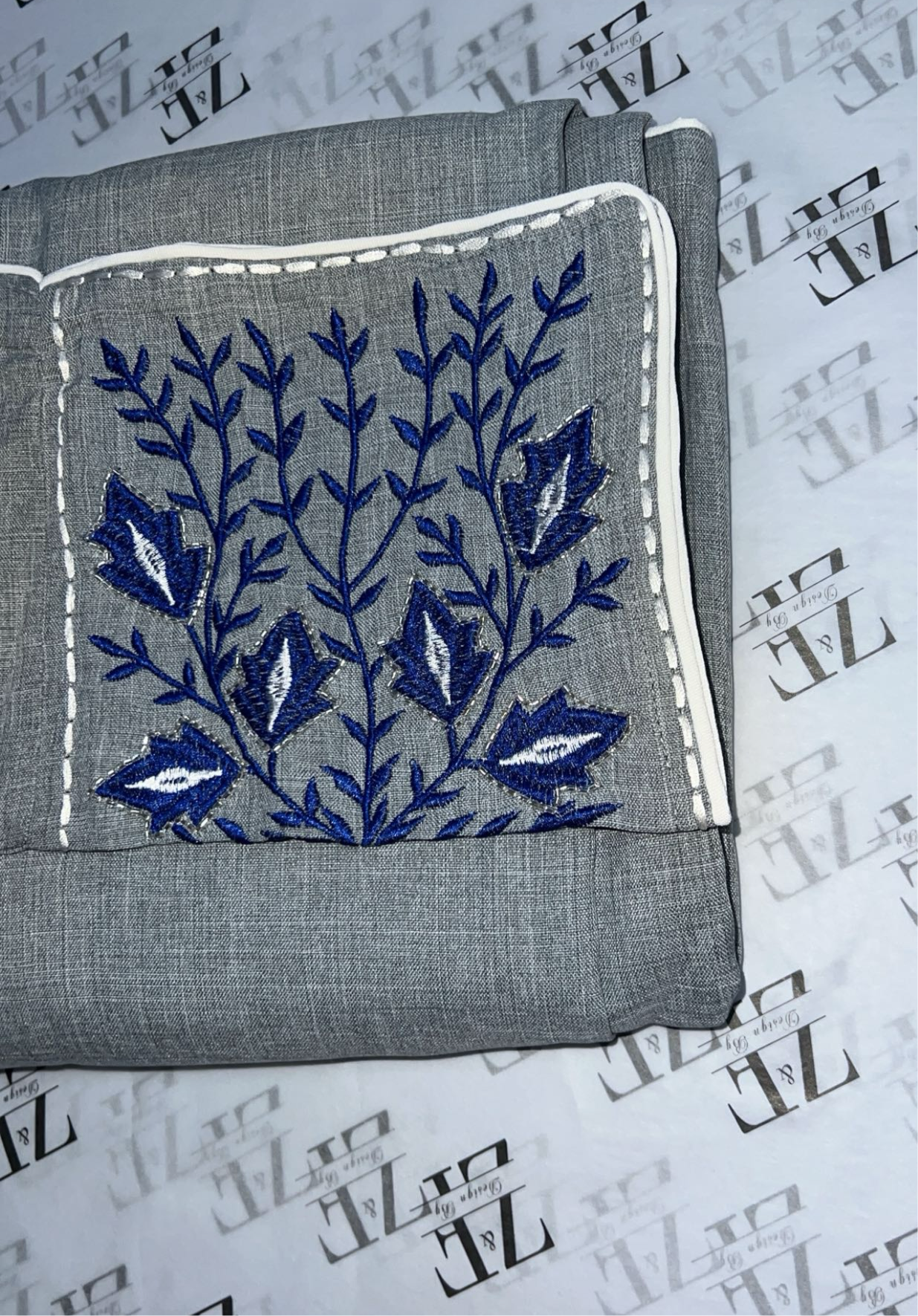 Fabric: Made of linen fabric and hand-sewn stones