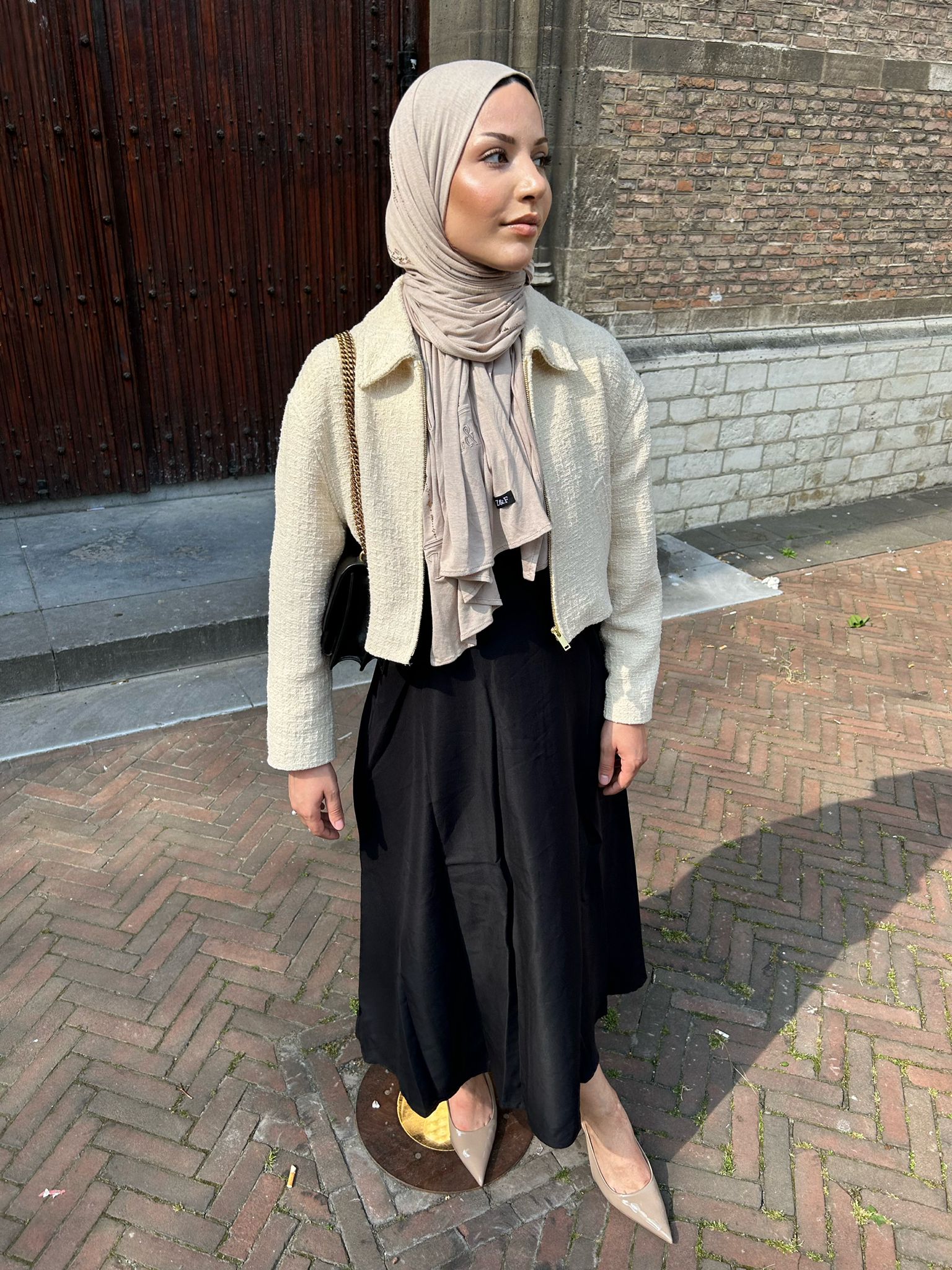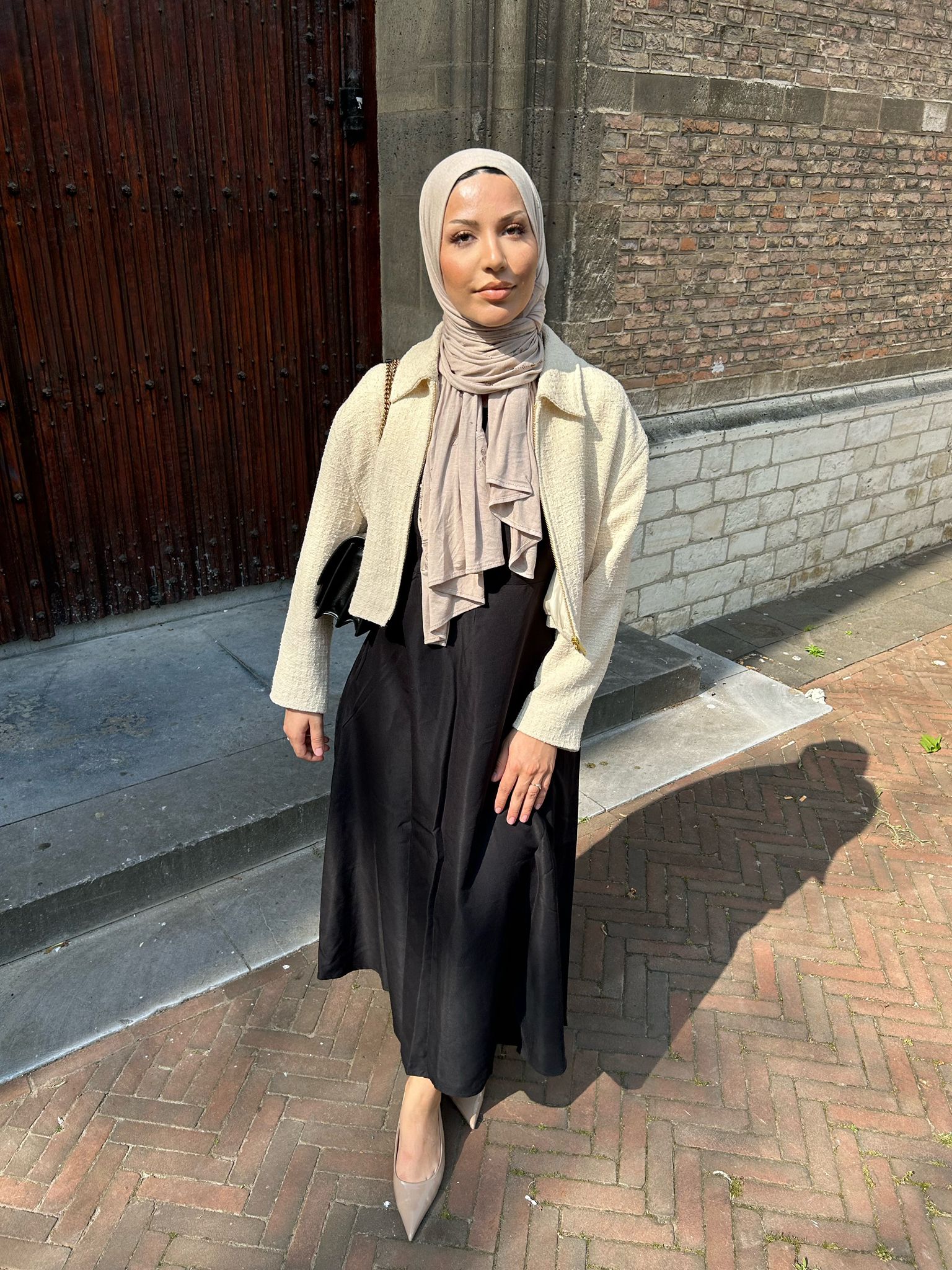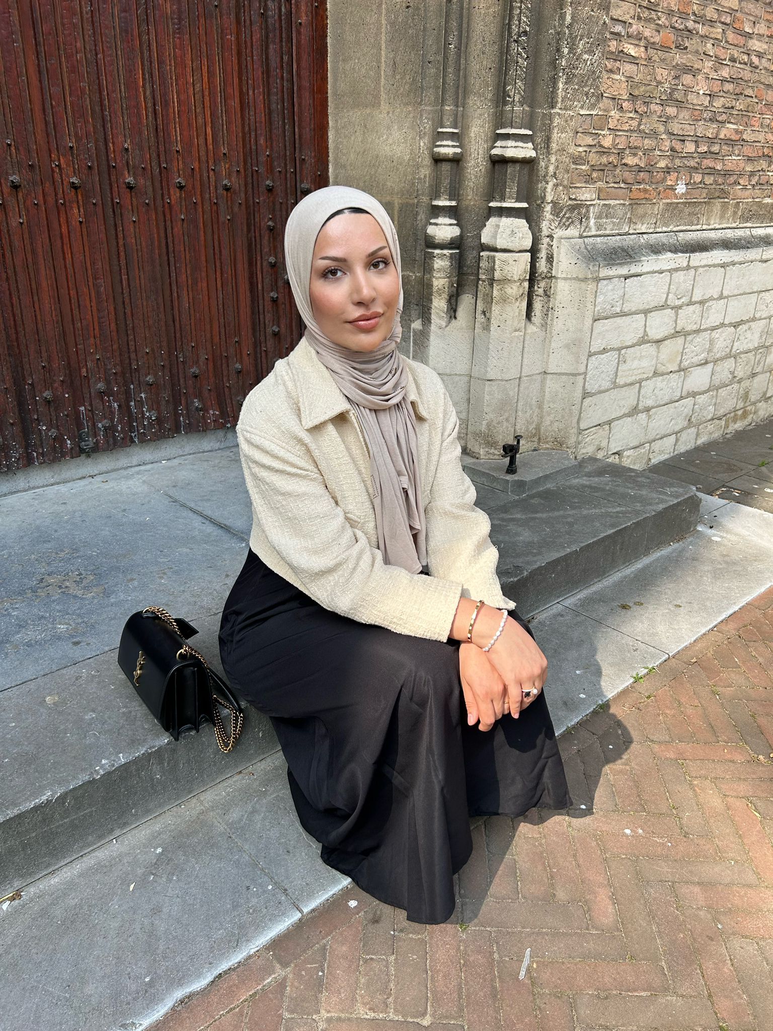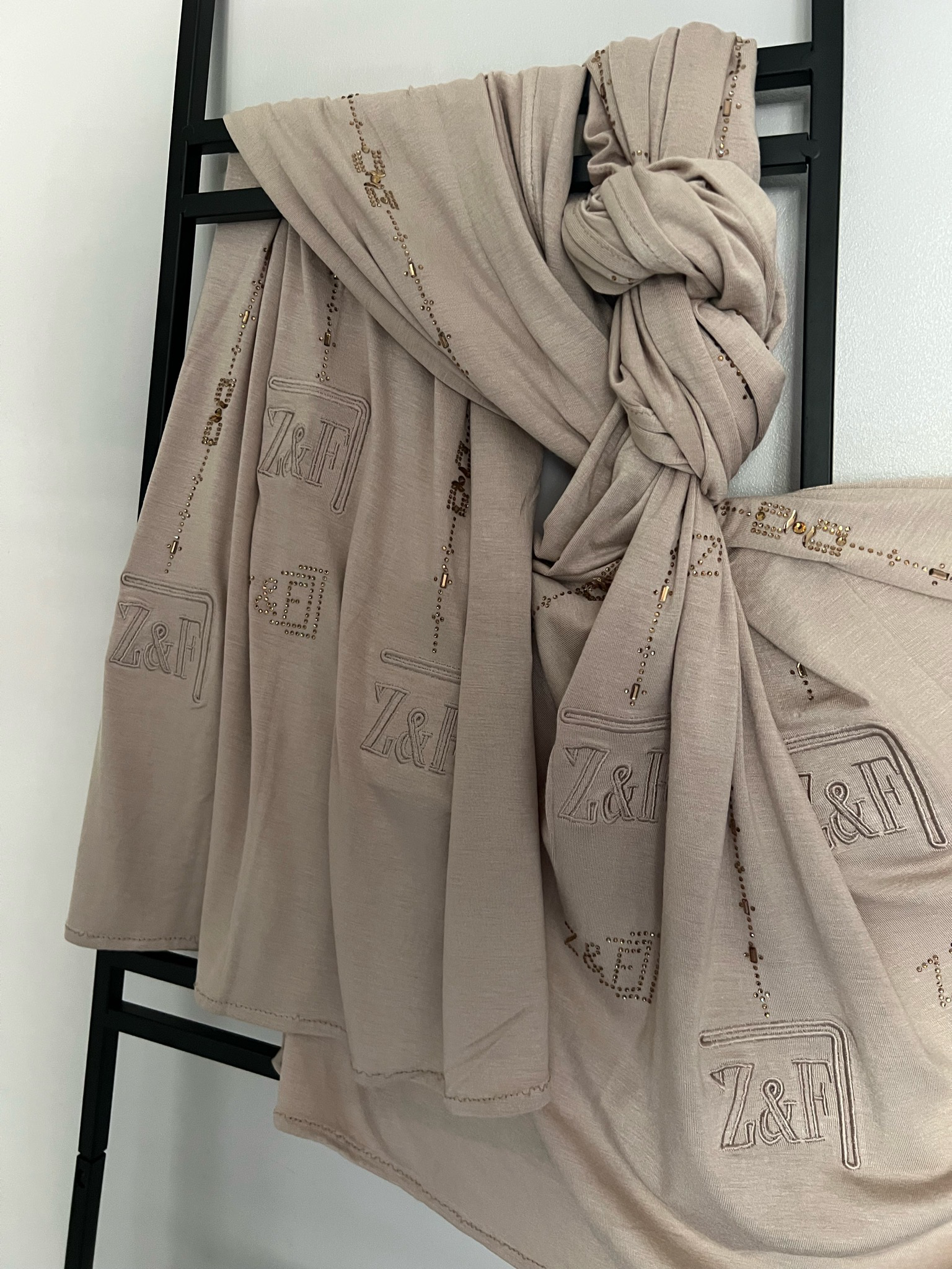 The Z&F scarfs are made from a soft jersey fabric with just the right amount of thickness. This fabric falls perfectly in place and stays beautiful after long time use. These scarfs can even be worn without a underscarf or pins.
