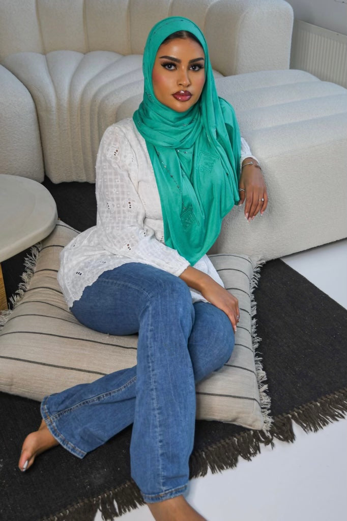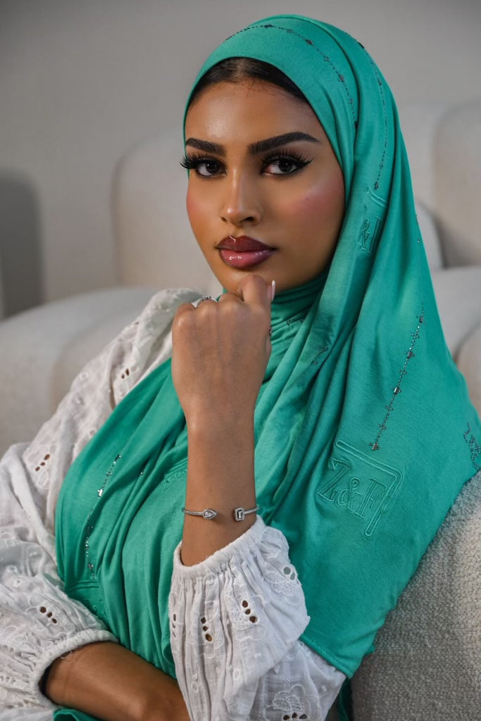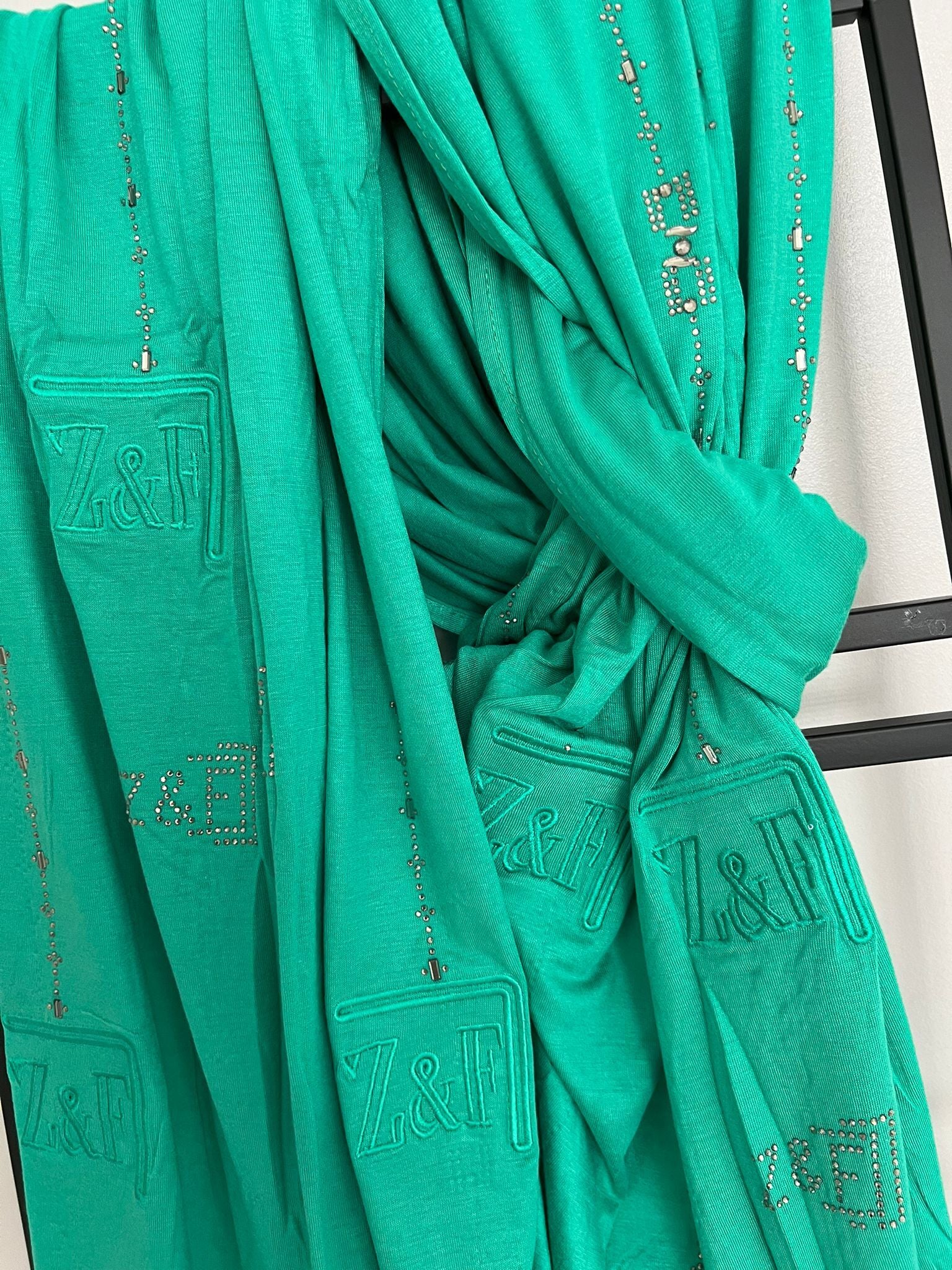 The Z&F scarfs are made from a soft jersey fabric with just the right amount of thickness. This fabric falls perfectly in place and stays beautiful after long time use. These scarfs can even be worn without a underscarf or pins.