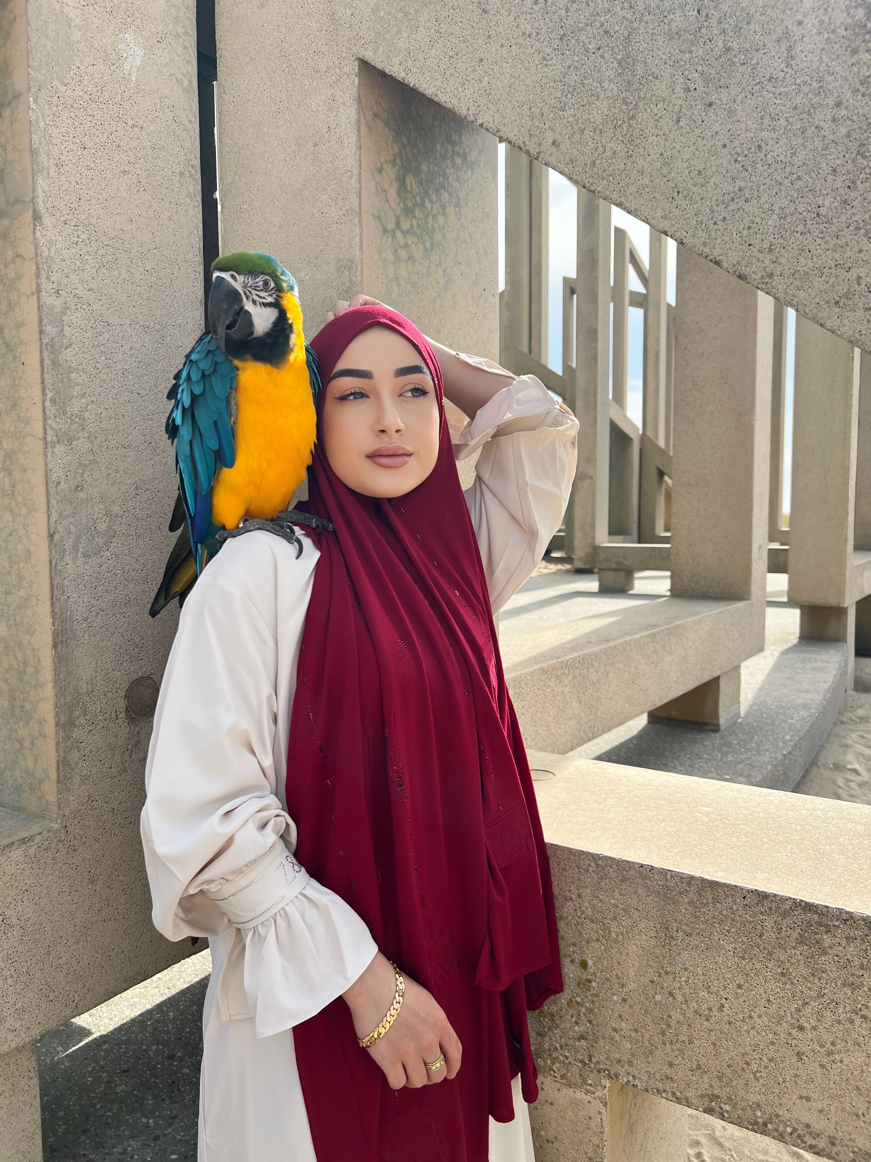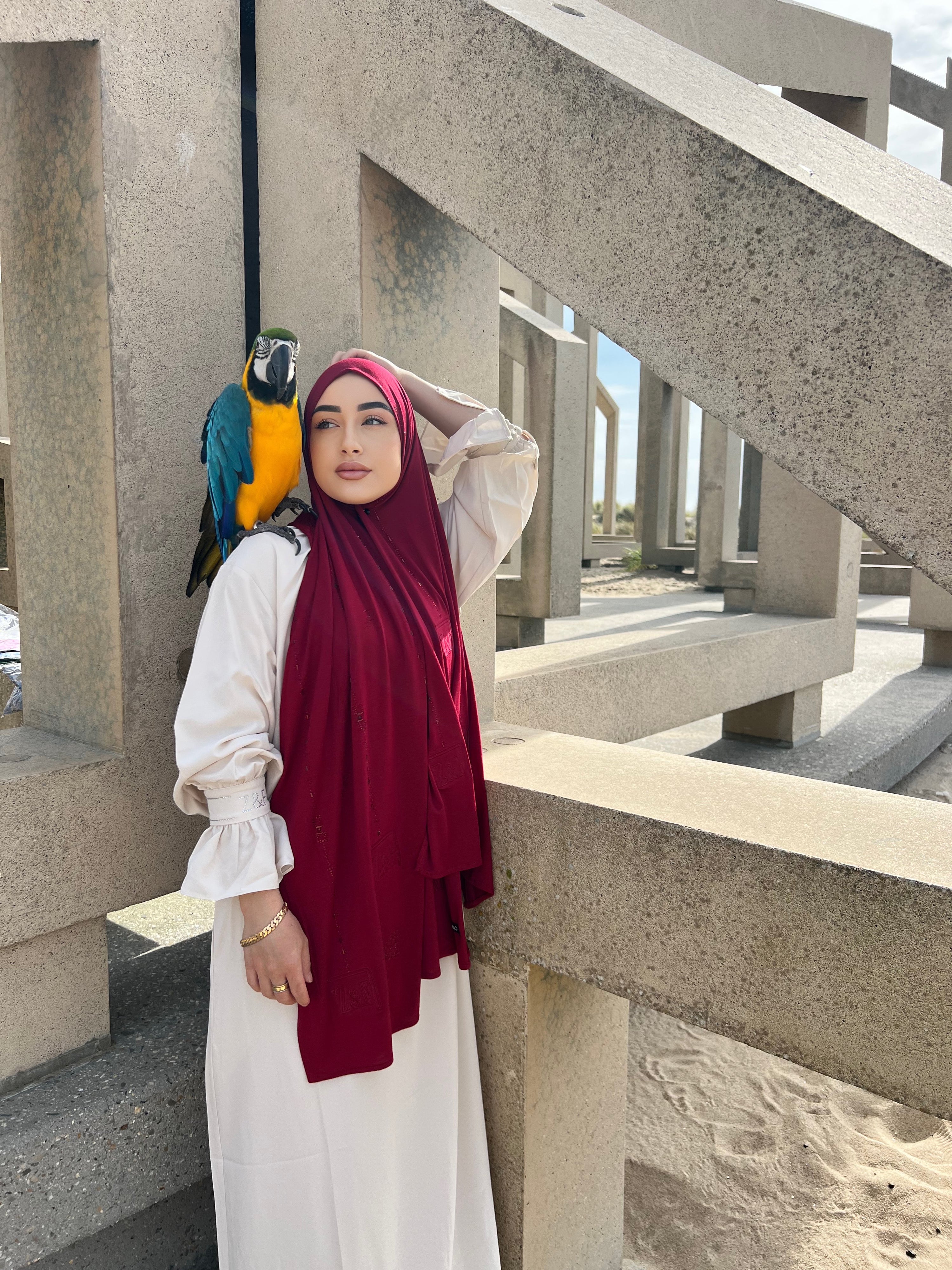 The Z&F scarfs are made from a soft jersey fabric with just the right amount of thickness. This fabric falls perfectly in place and stays beautiful after long time use. These scarfs can even be worn without a underscarf or pins.
