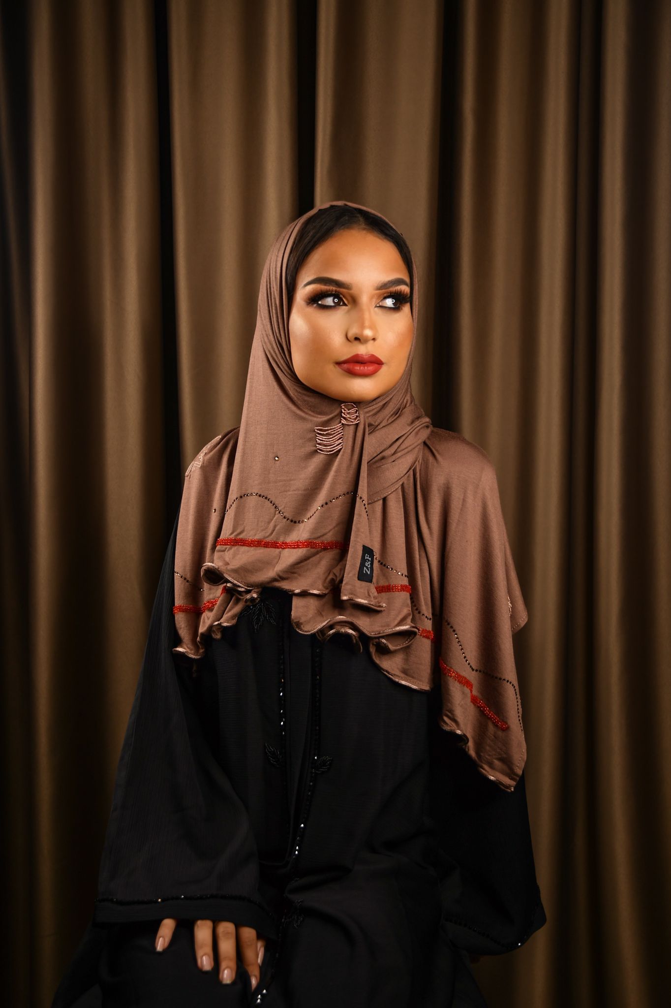 The Z&F scarfs are made from a soft jersey fabric with just the right amount of thickness. This fabric falls perfectly in place and stays beautiful after long time use. These scarfs can even be worn without a underscarf or pins.