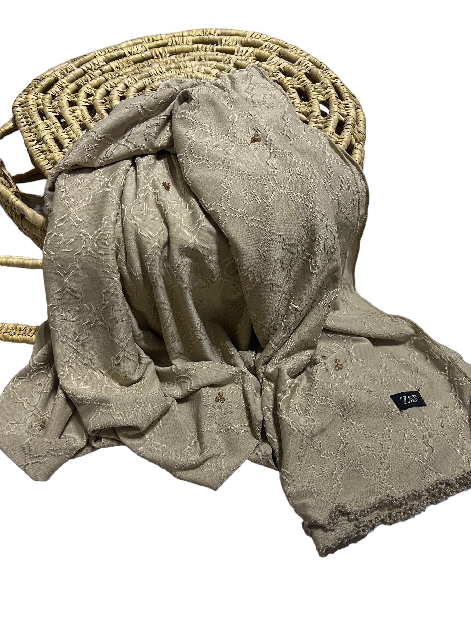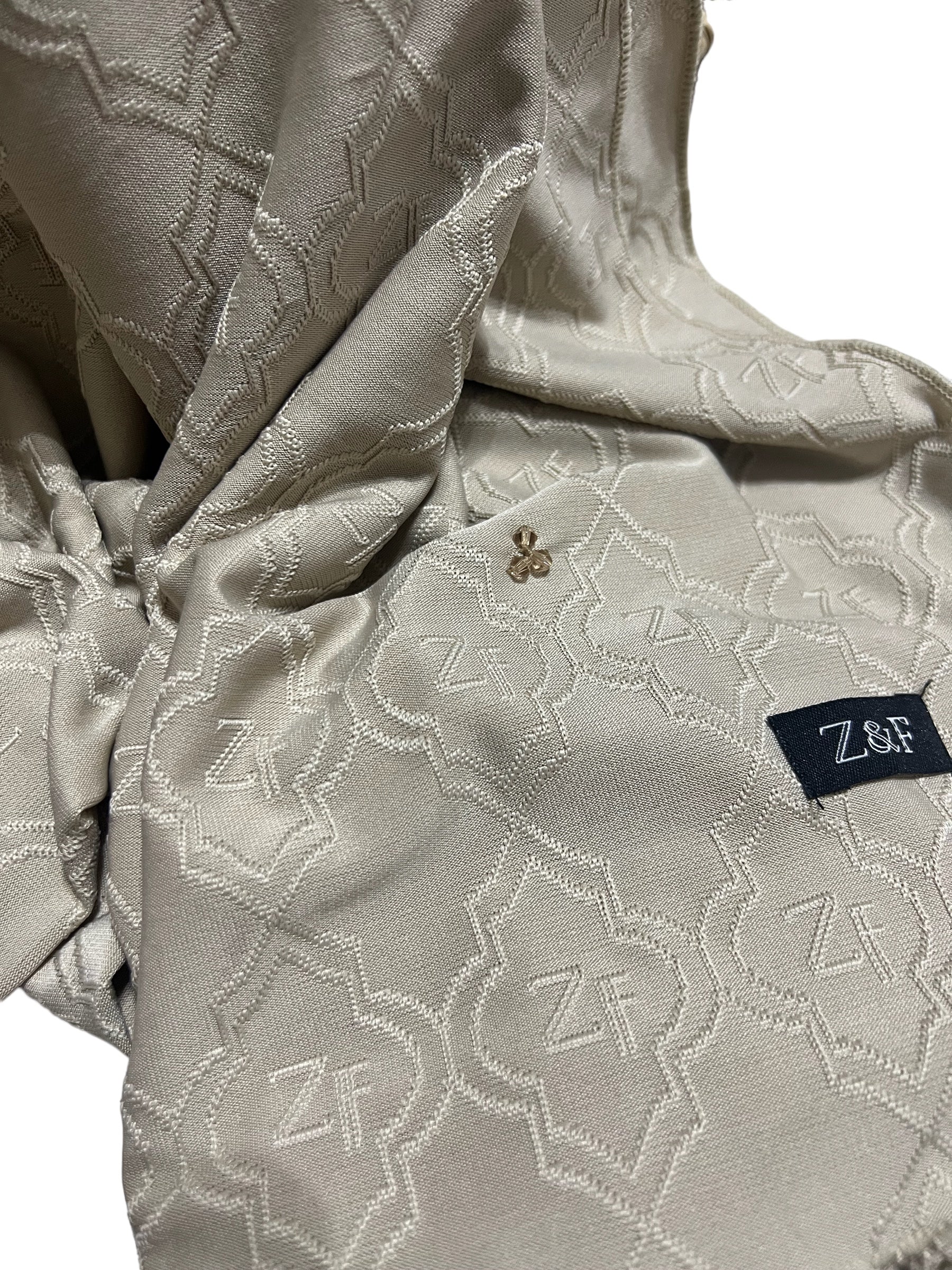 The Z&F scarfs are made from a soft jersey fabric with just the right amount of thickness. This fabric falls perfectly in place and stays beautiful after long time use. These scarfs can even be worn without a underscarf or pins.