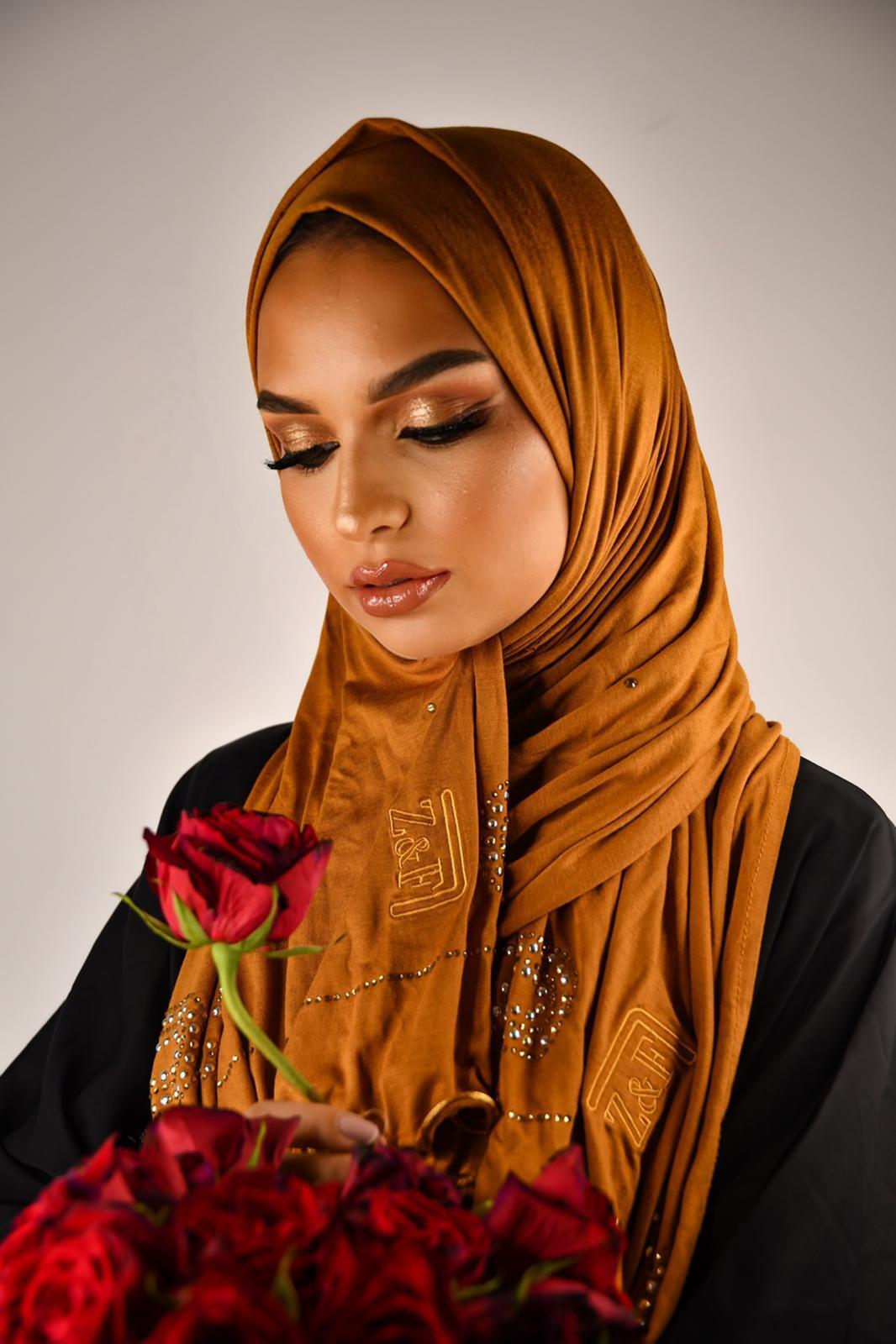 The Z&F scarfs are made from a soft jersey fabric with just the right amount of thickness. This fabric falls perfectly in place and stays beautiful after long time use. These scarfs can even be worn without a underscarf or pins.
