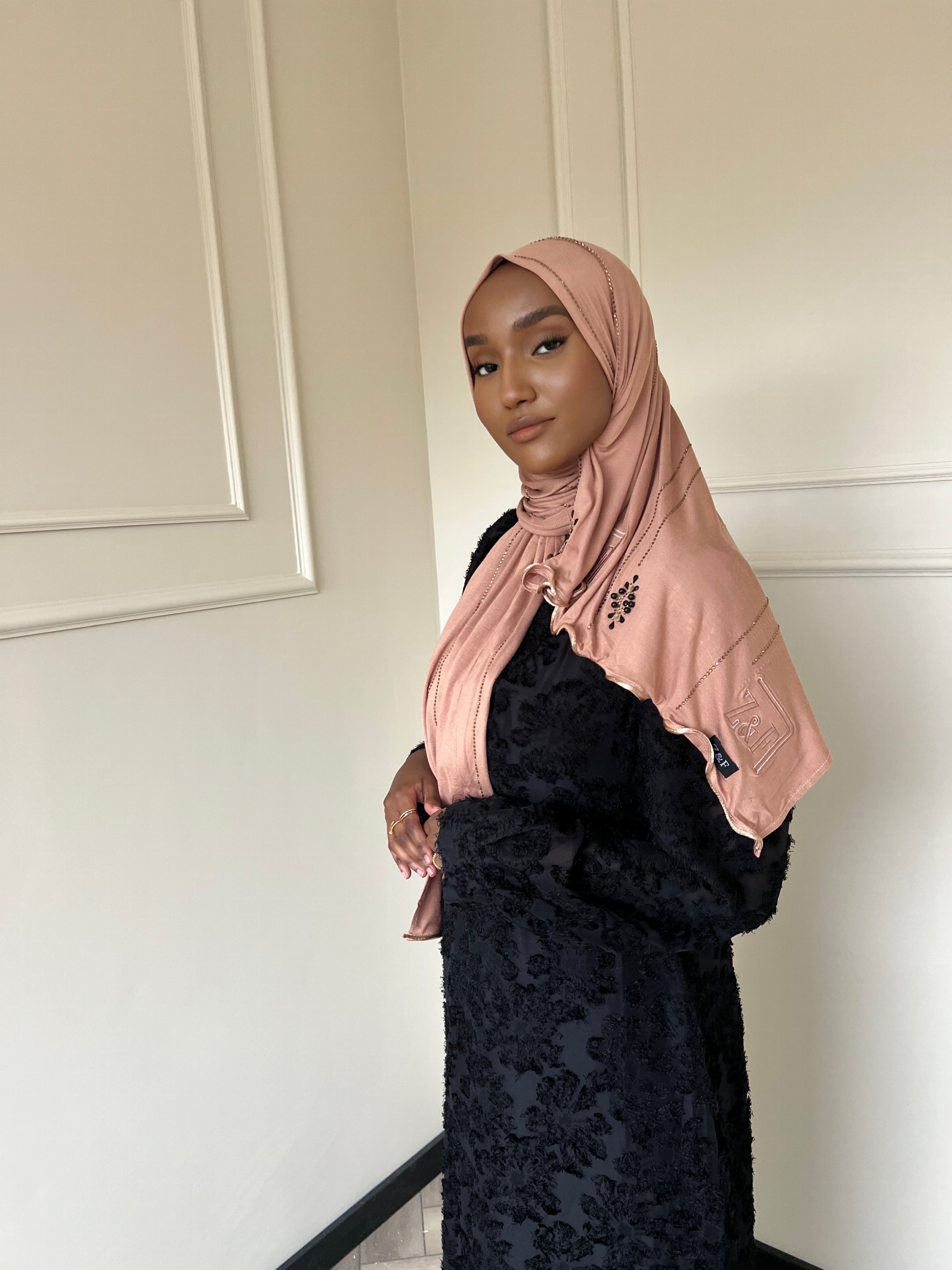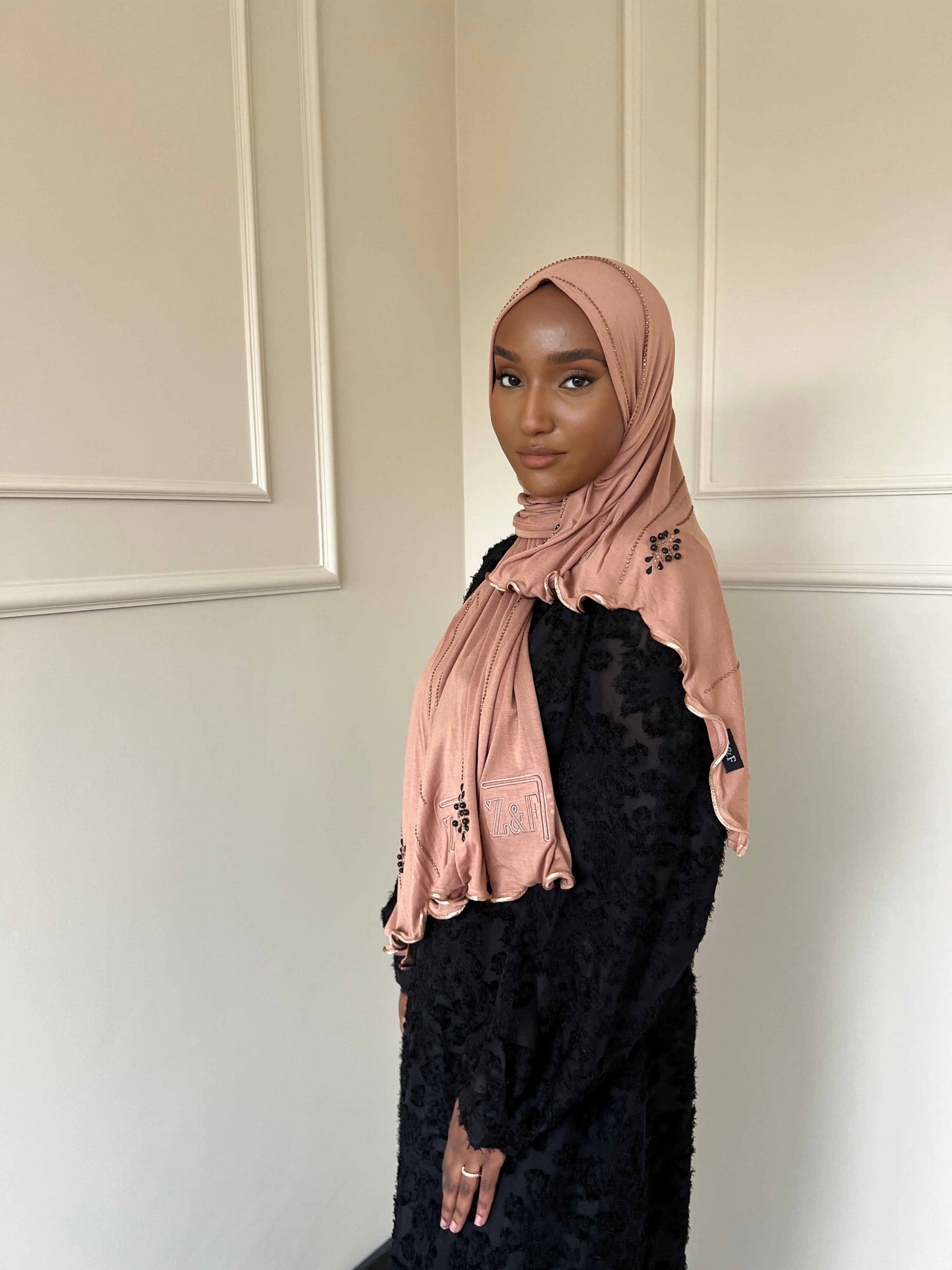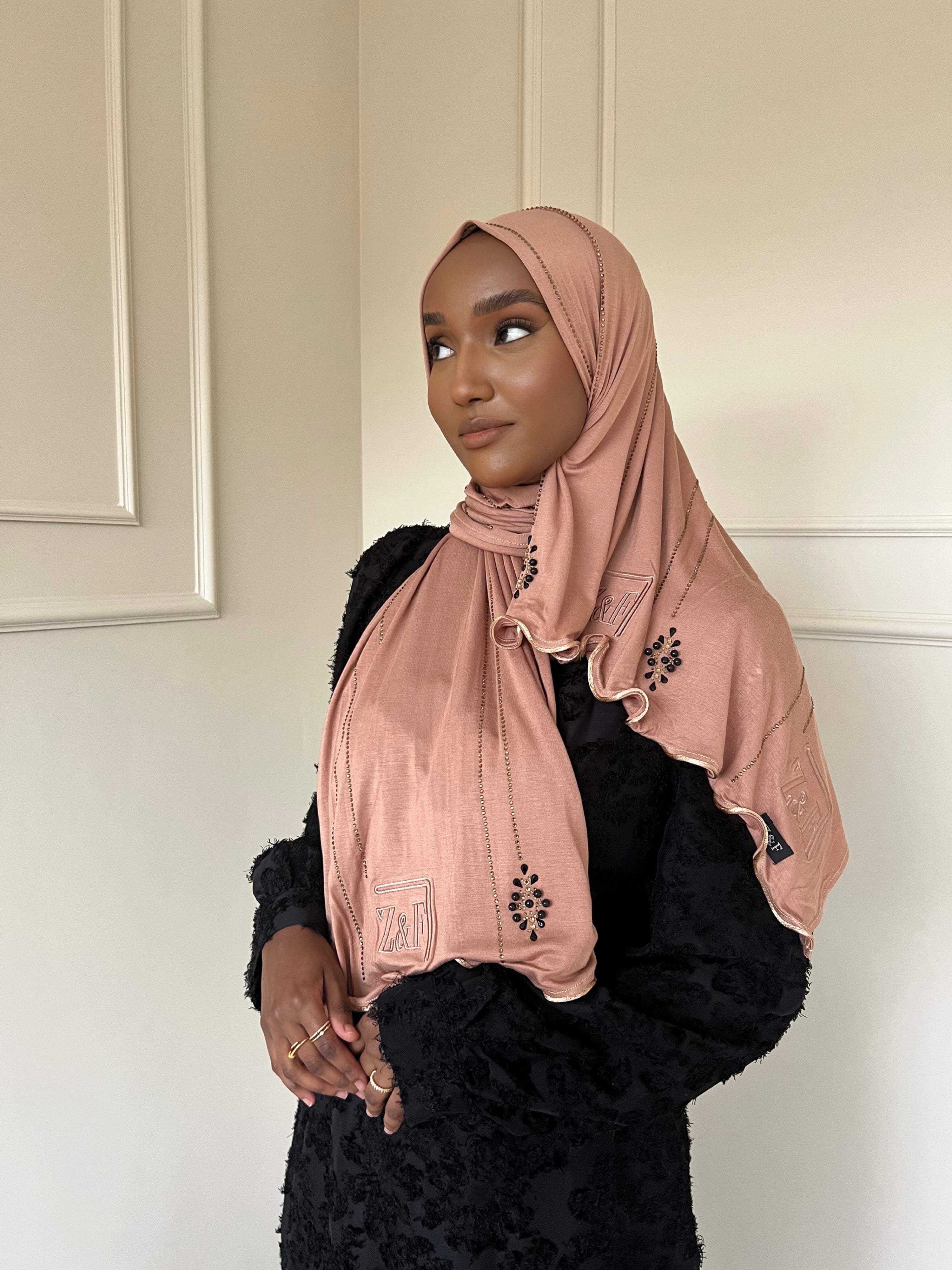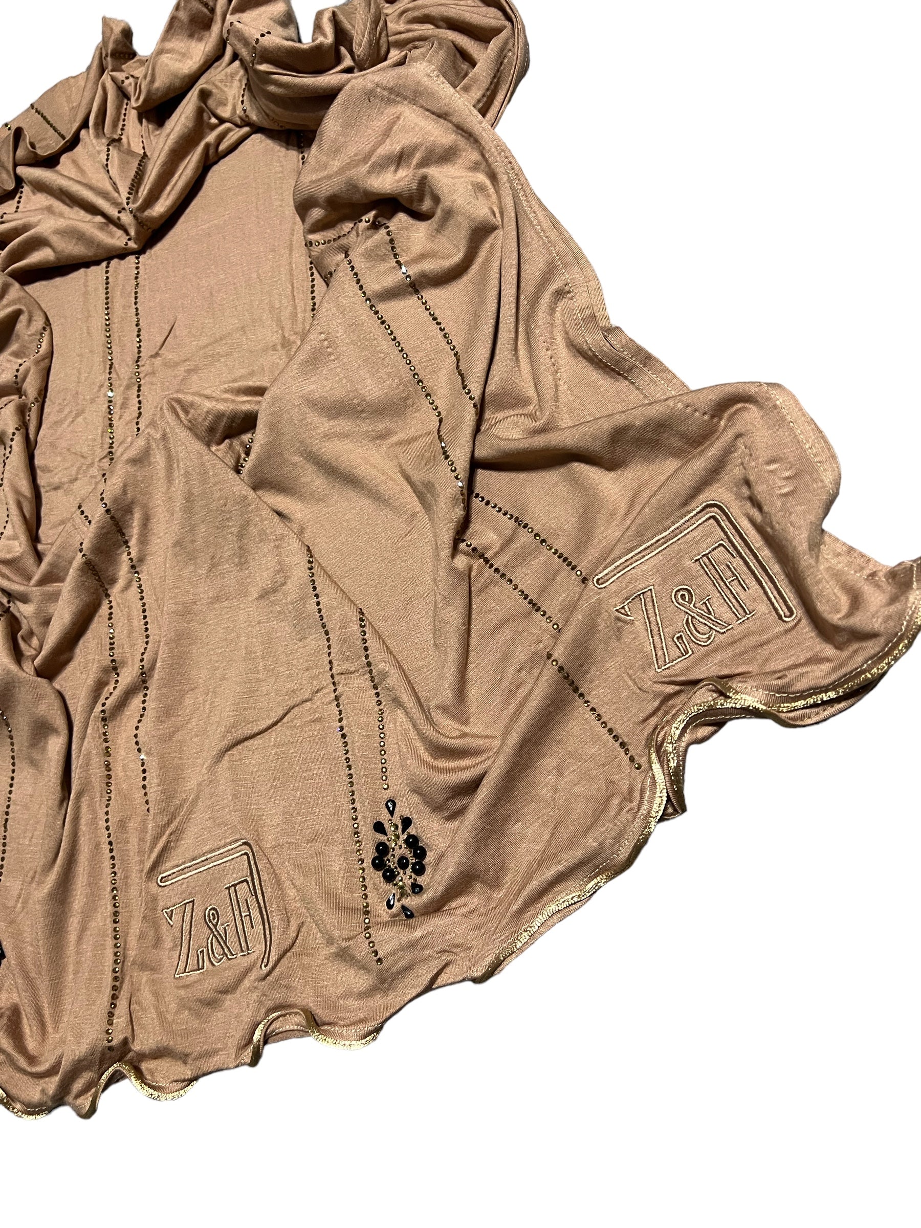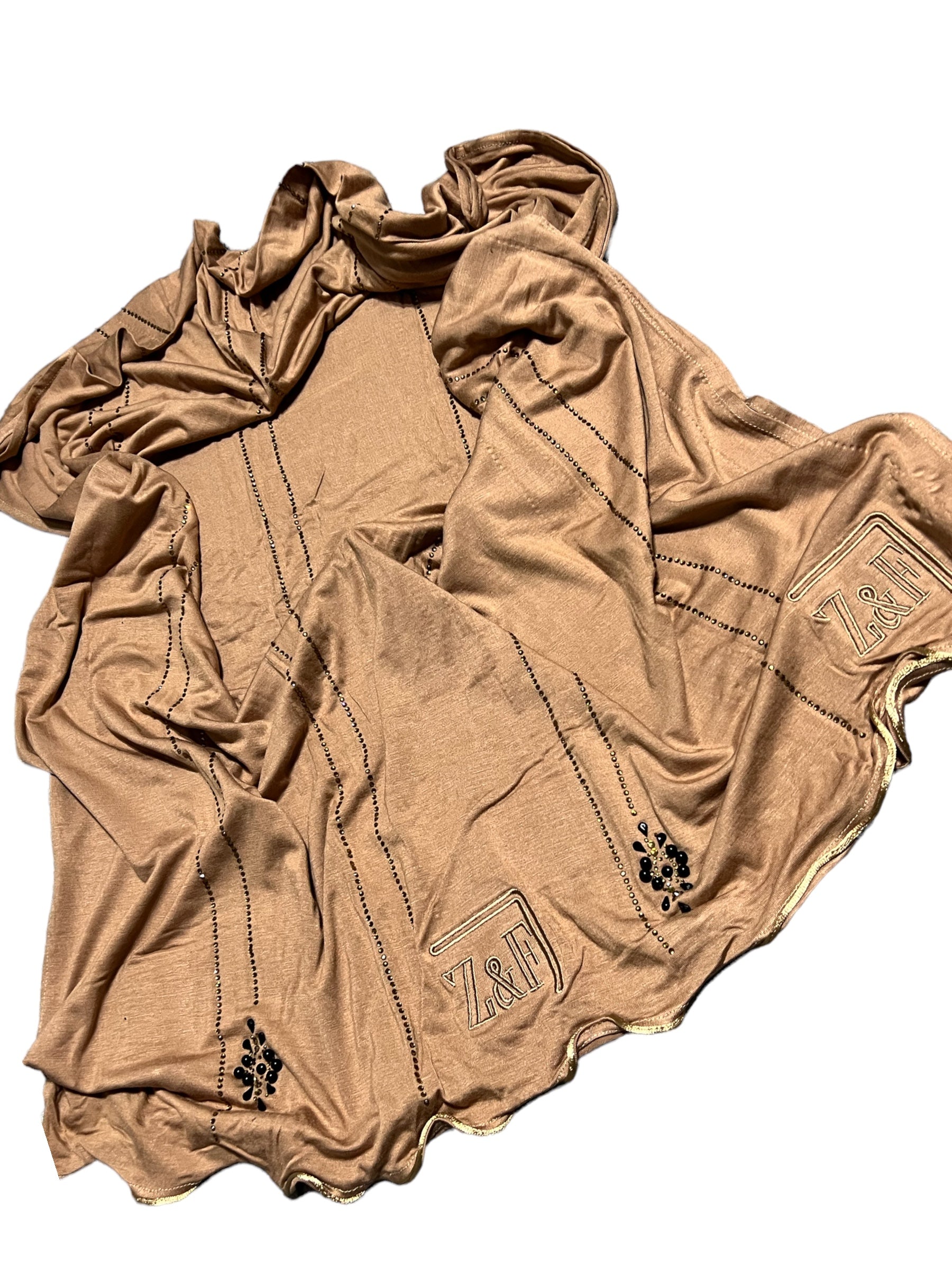 The Z&F scarfs are made from a soft jersey fabric with just the right amount of thickness. This fabric falls perfectly in place and stays beautiful after long time use. These scarfs can even be worn without a underscarf or pins.