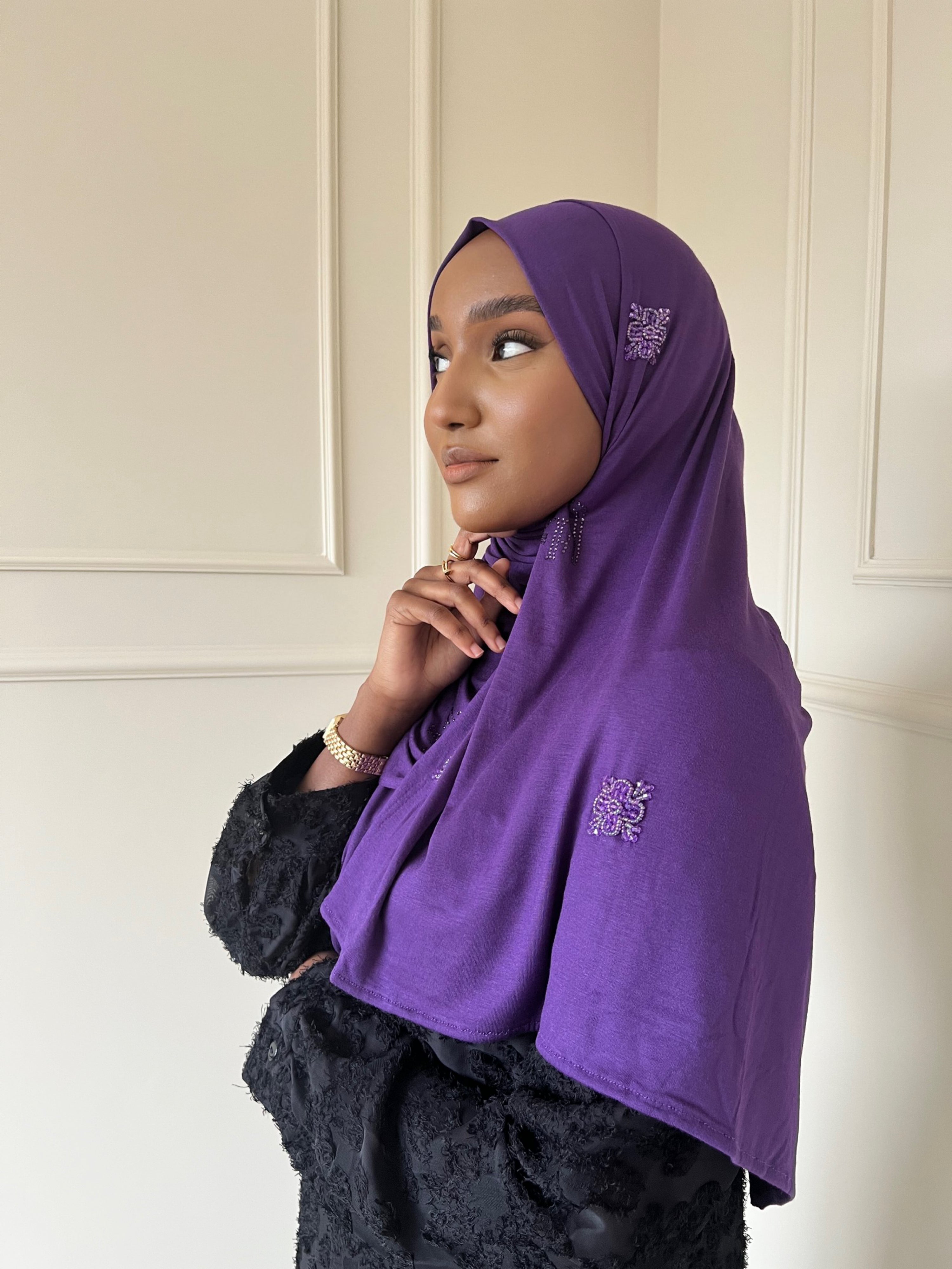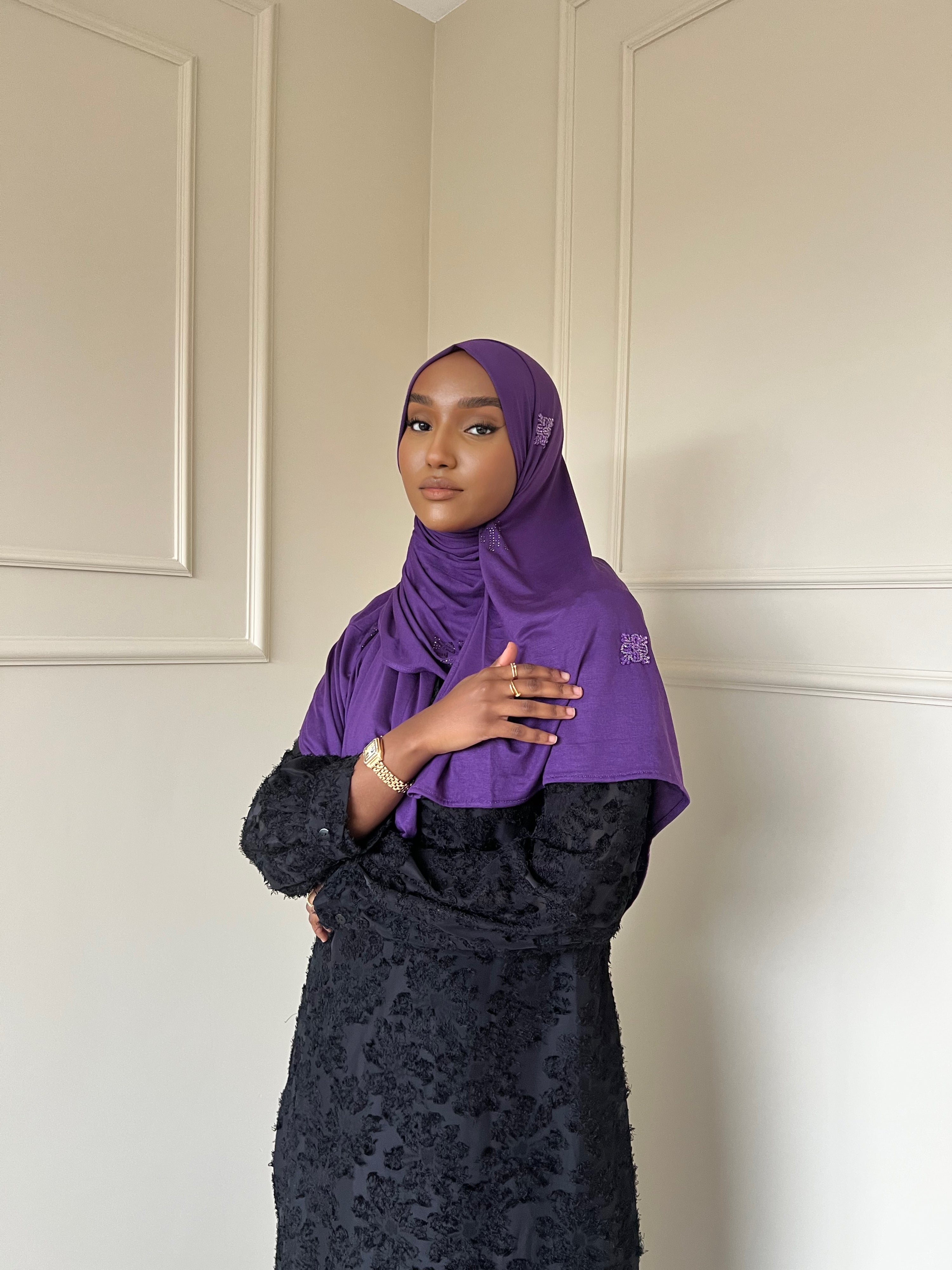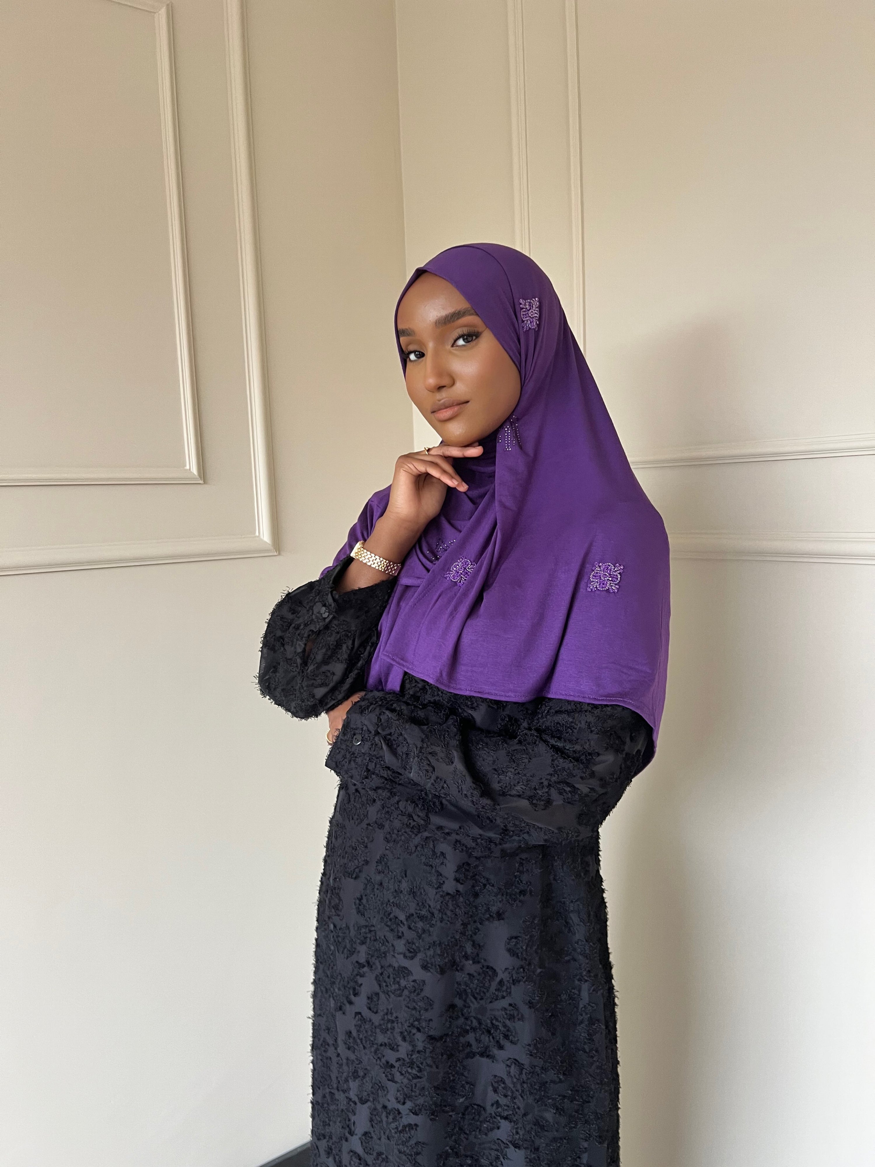 The Z&F scarfs are made from a soft jersey fabric with just the right amount of thickness. This fabric falls perfectly in place and stays beautiful after long time use. These scarfs can even be worn without a underscarf or pins.