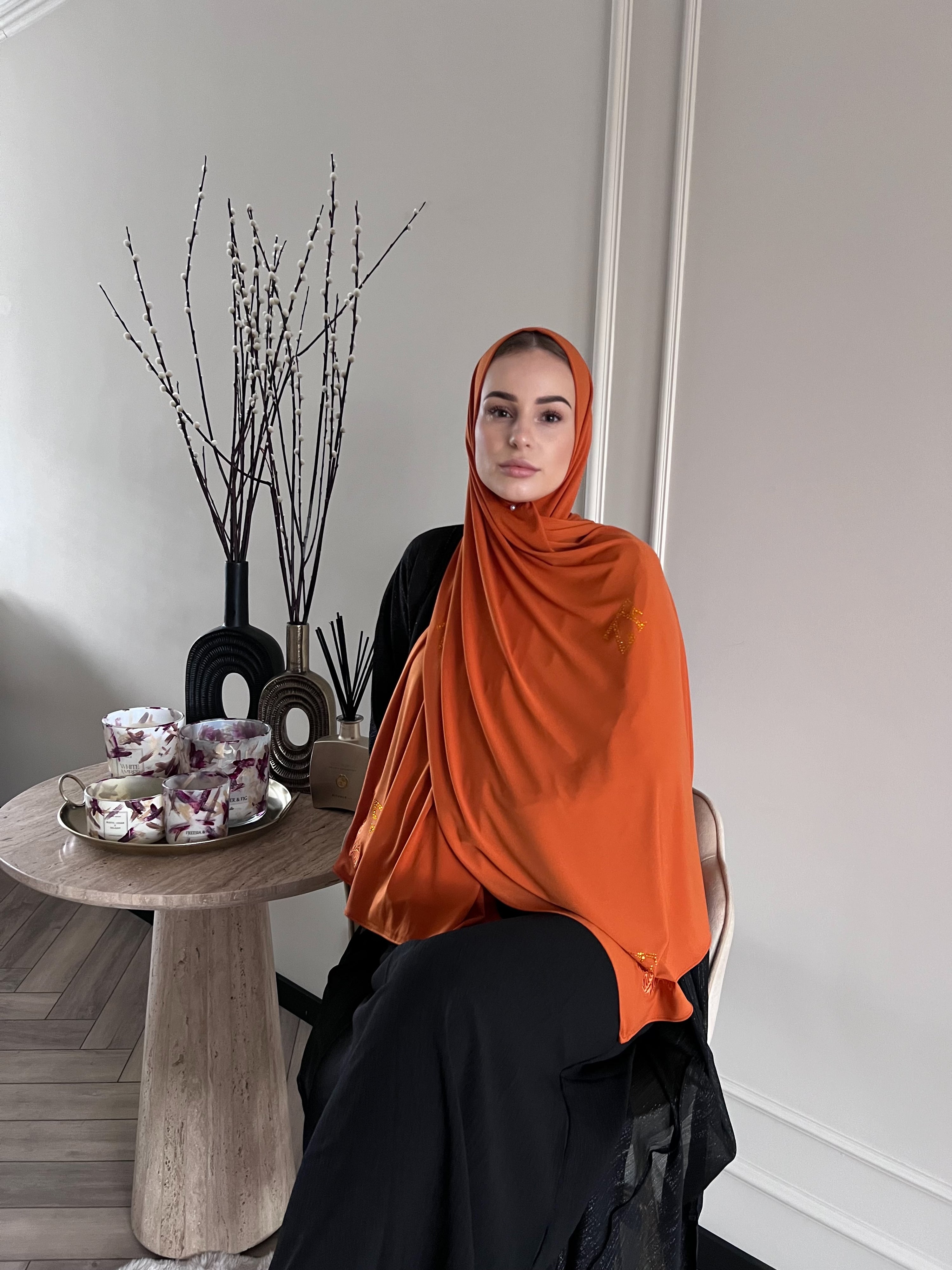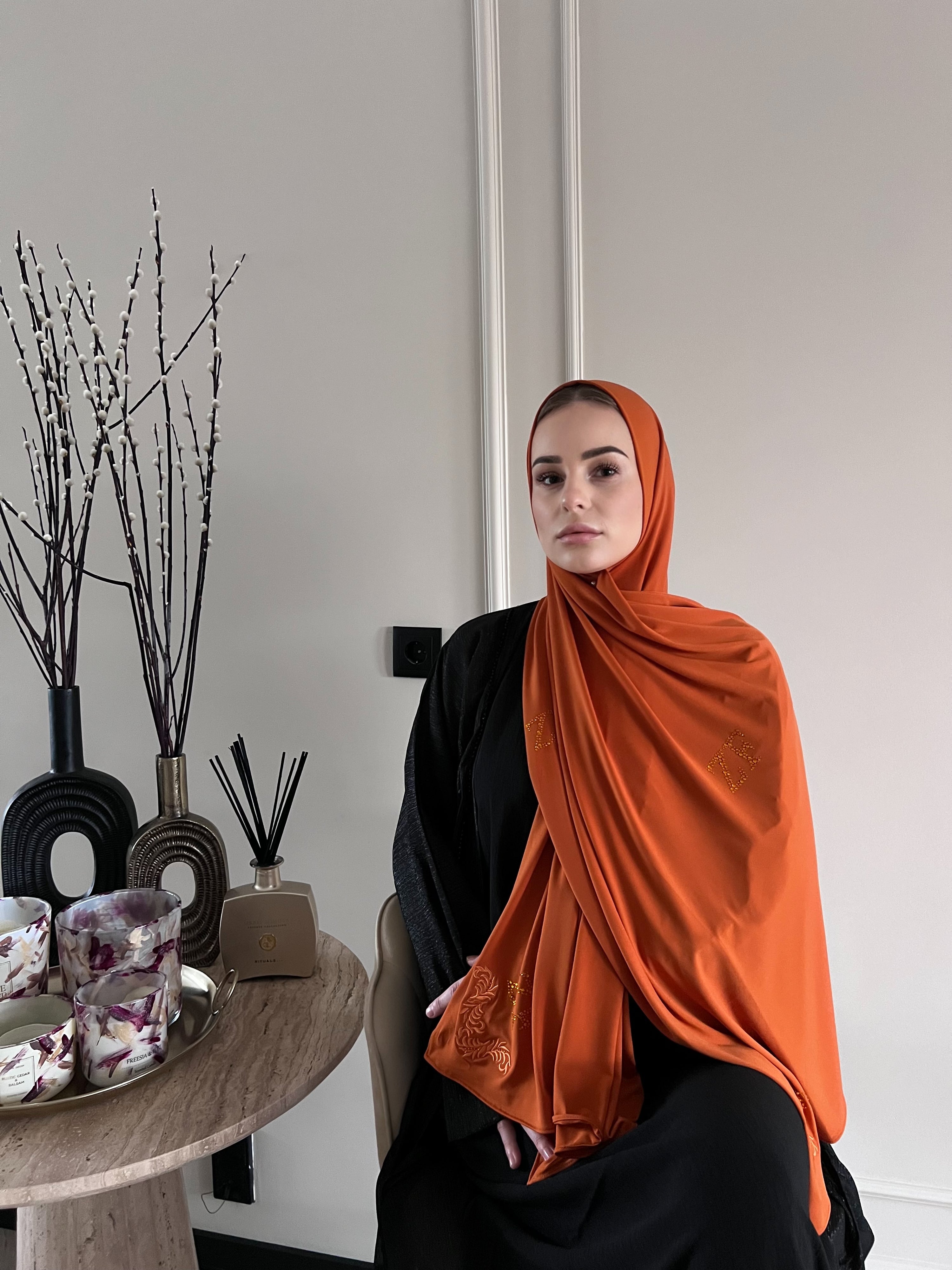 The design By Z&F scarfs are made from a soft jersey fabric with just the right amount of thickness. This fabric falls perfectly in place and stays beautiful after long time use. These scarfs can even be worn without a underscarf or pins.