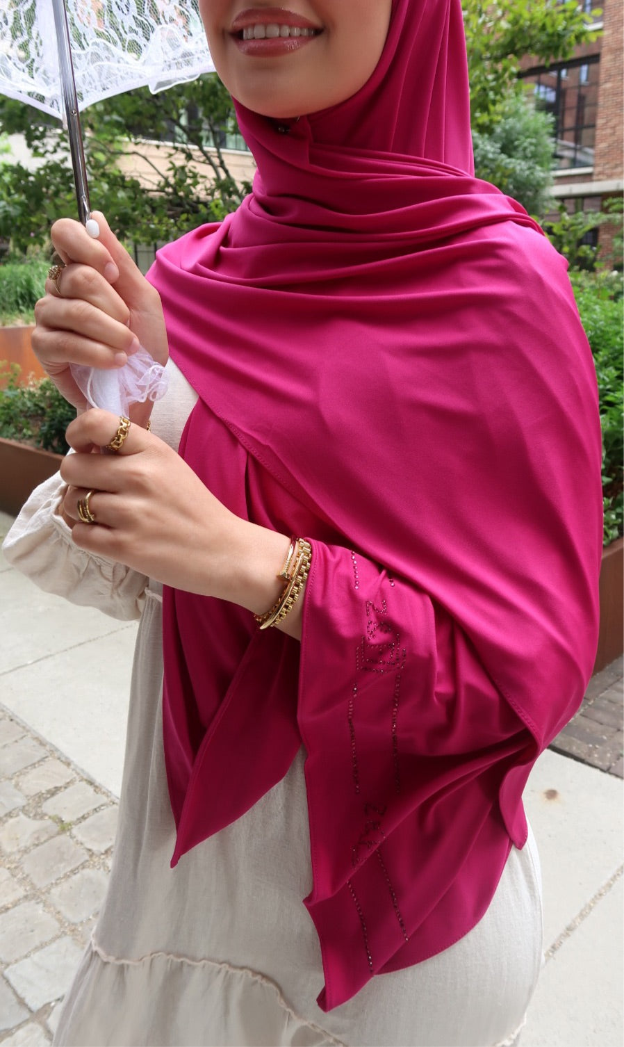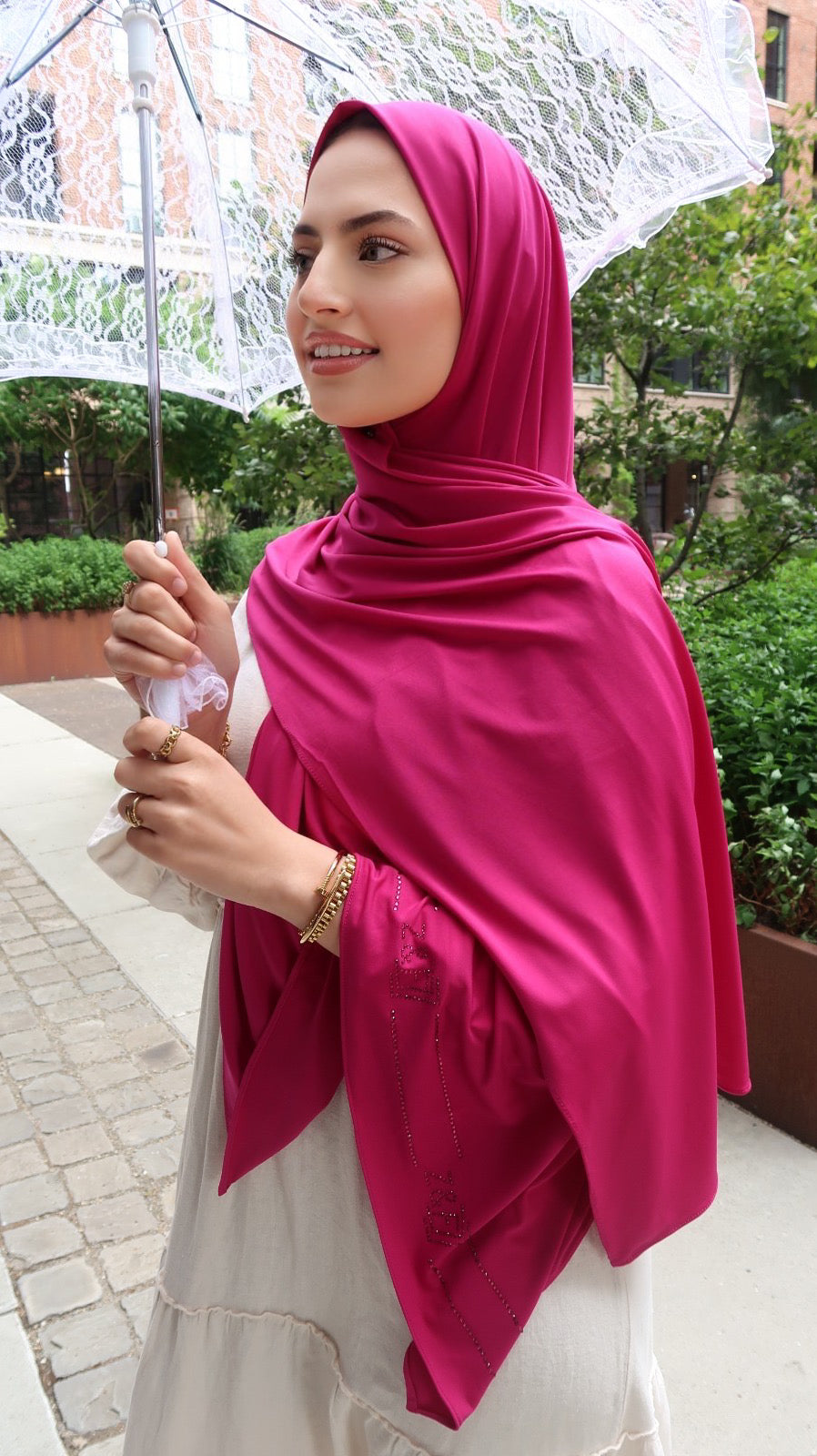 The design By Z&F scarfs are made from a soft jersey fabric with just the right amount of thickness. This fabric falls perfectly in place and stays beautiful after long time use. These scarfs can even be worn without a underscarf or pins.