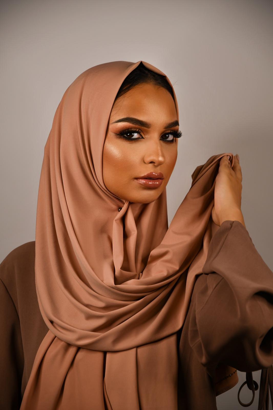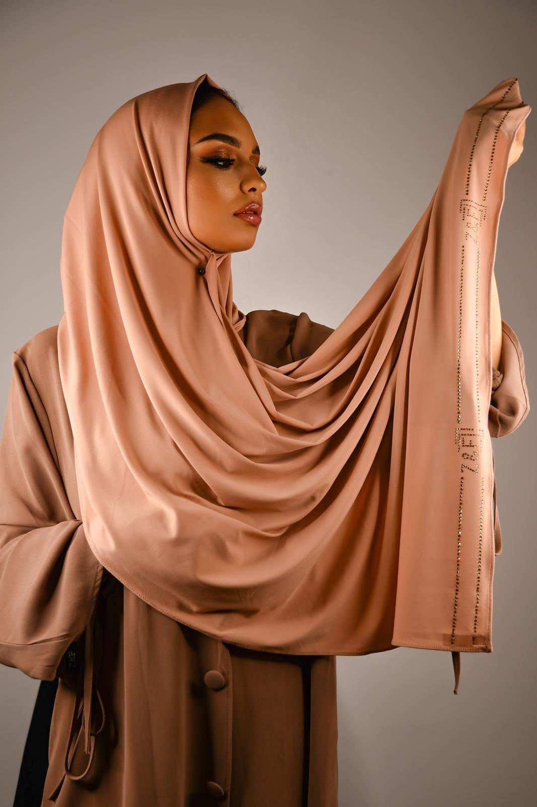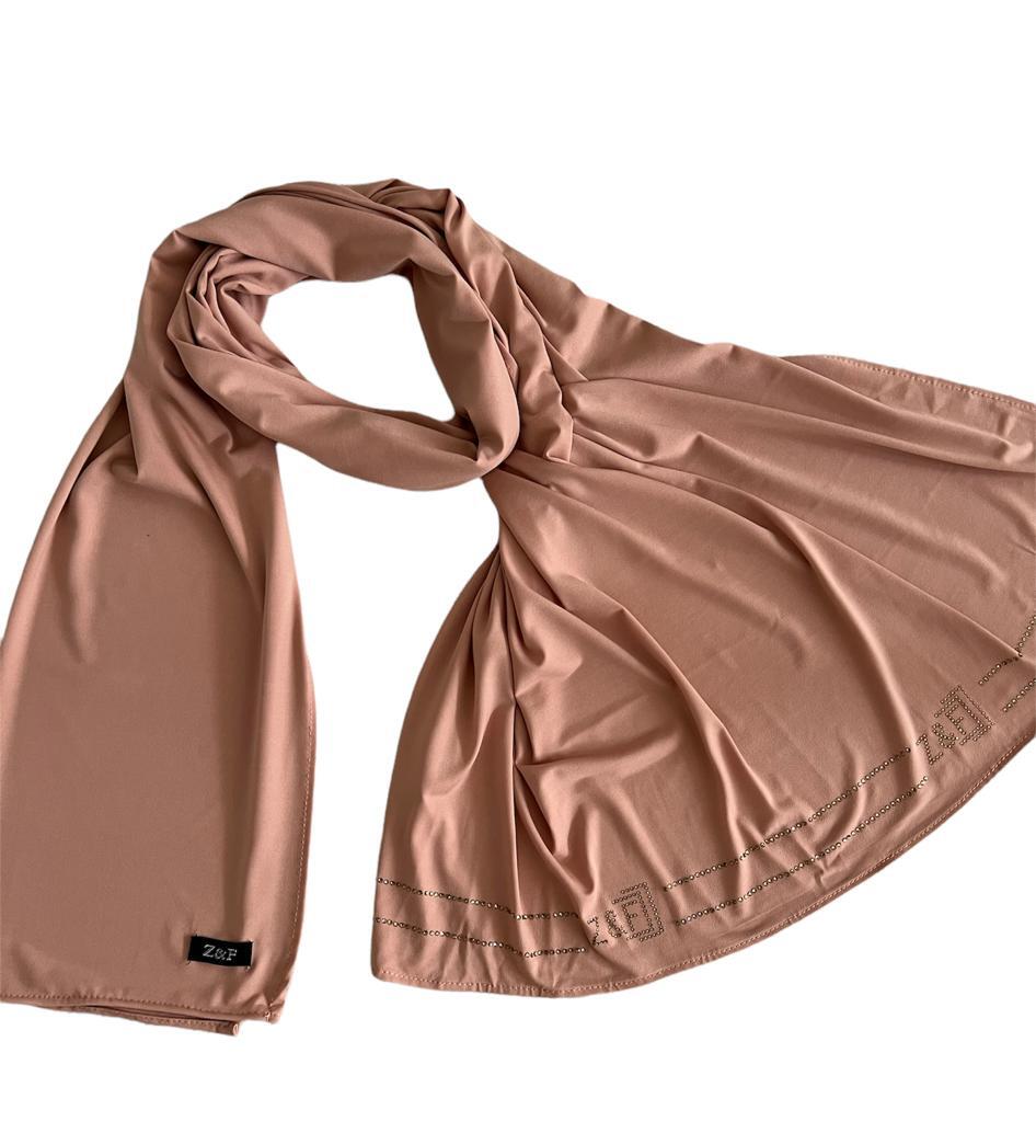 The design By Z&F scarfs are made from a soft jersey fabric with just the right amount of thickness. This fabric falls perfectly in place and stays beautiful after long time use. These scarfs can even be worn without a underscarf or pins.