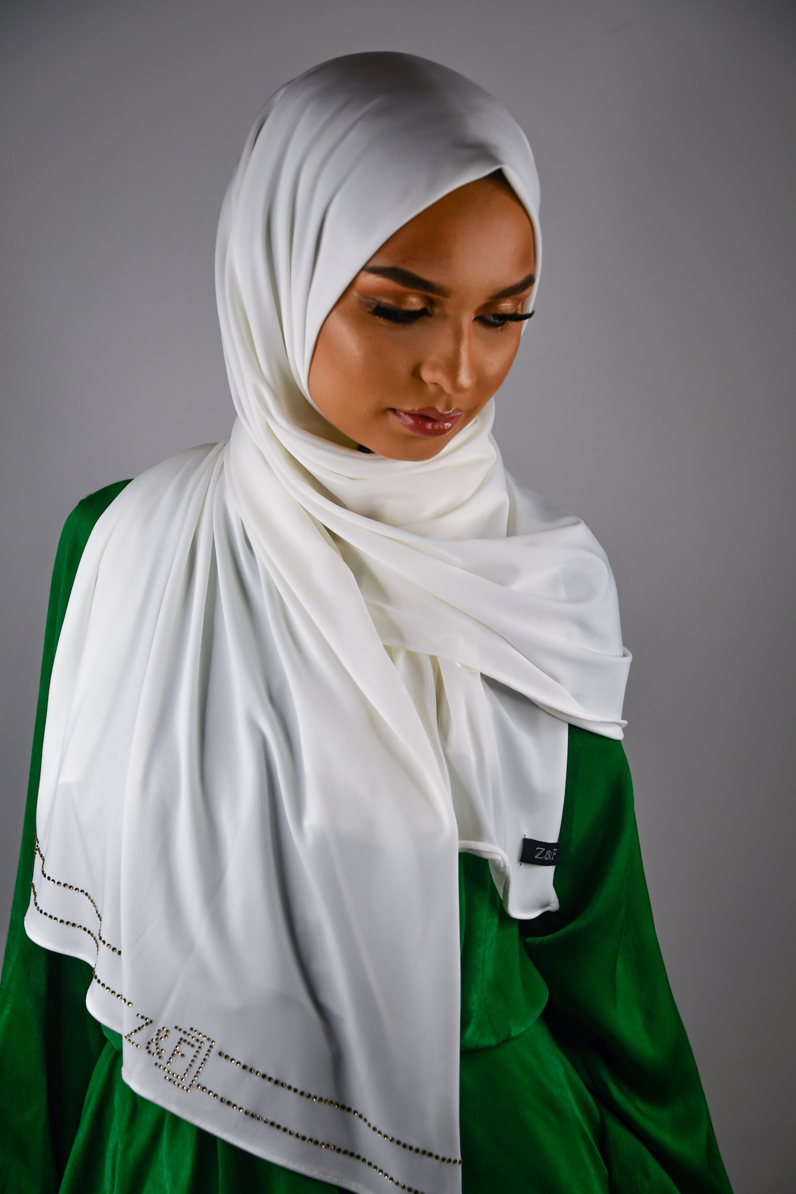 The design By Z&F scarfs are made from a soft jersey fabric with just the right amount of thickness. This fabric falls perfectly in place and stays beautiful after long time use. These scarfs can even be worn without a underscarf or pins.