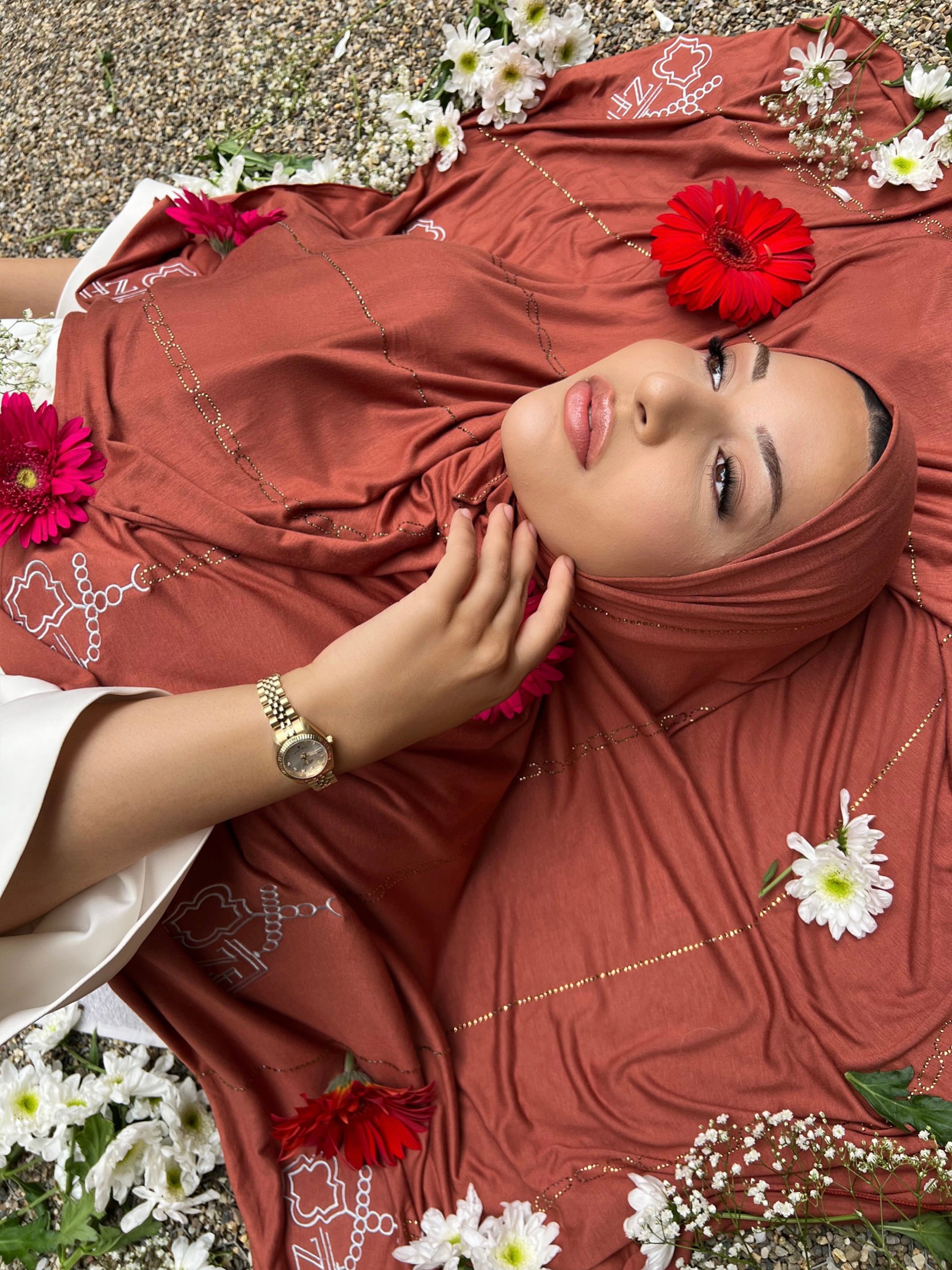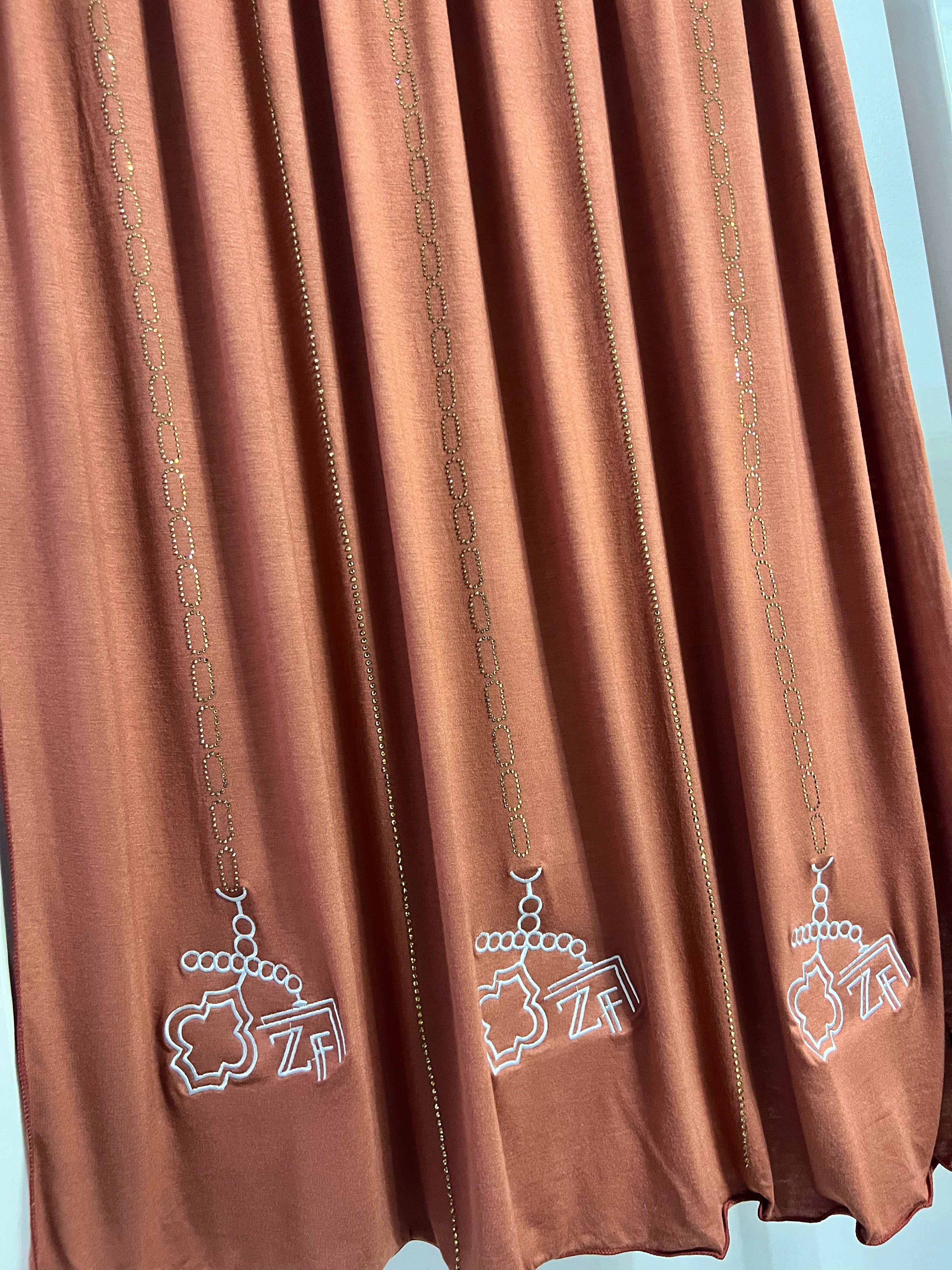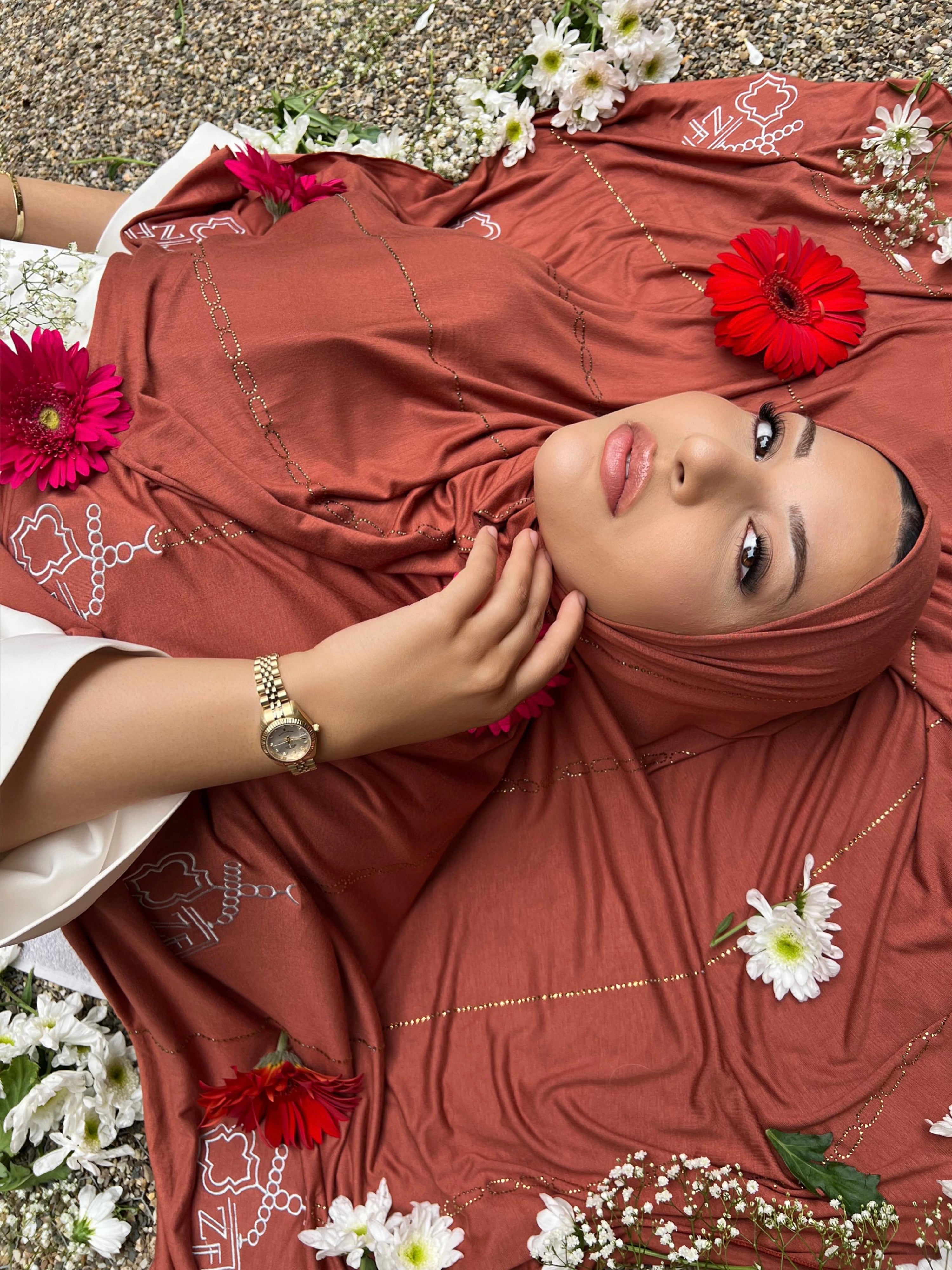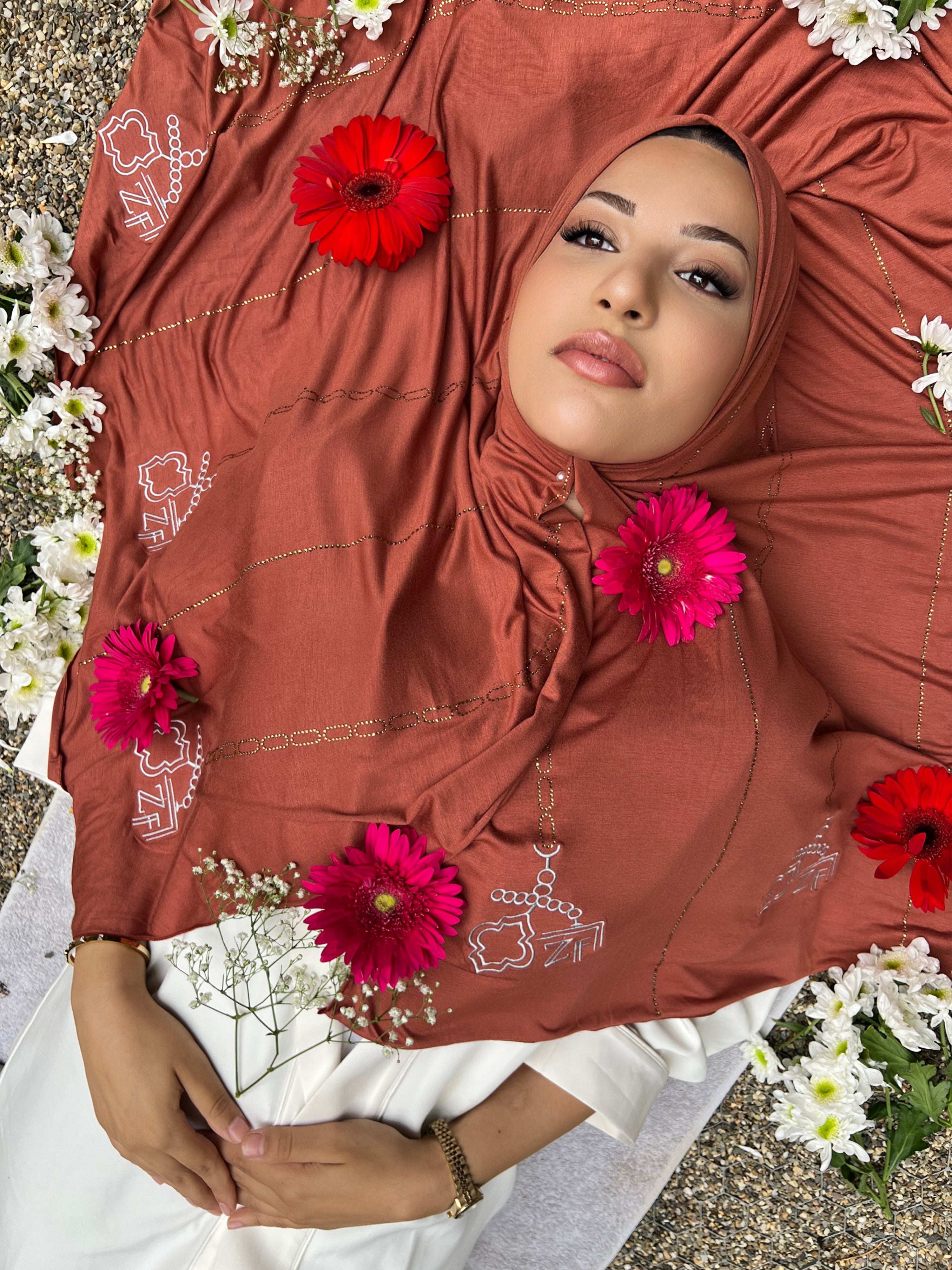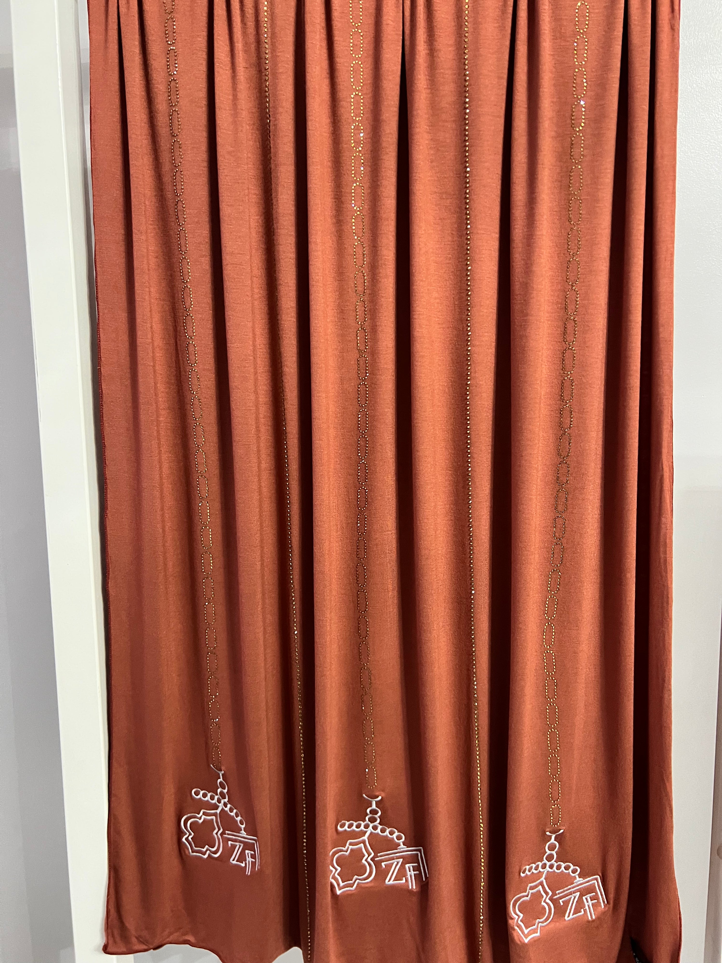 The Z&F scarfs are made from a soft jersey fabric with just the right amount of thickness. This fabric falls perfectly in place and stays beautiful after long time use. These scarfs can even be worn without a underscarf or pins.